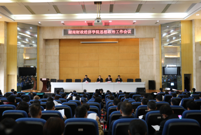 新湖南客户端12月19日讯(通讯员 唐雄伟 摄影 何妍)为深入学习贯彻习近平新时代中国特色社会主义思想、贯彻落实全国全省高校思想政治工作会议精神和全国教育大会精神,加强和改进新形势下学校思想政治工作,12月18日下午,湖南财院在图书馆学术报告厅召开思想政治工作会议,会议由湖南财院校长刘长庚主持。全体校领导、各职能部门与二级学院的党政正副职、教研室(系)主任、全体辅导员、马克思主义学院全体教师、关工委全体成员以及学生代表参加了会议。
