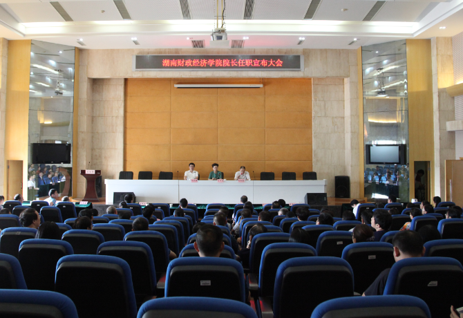 新湖南客户端9月18日讯(通讯员 姚旭辉 摄影 何妍)9月18日上午,湖南省委组织部副部长肖百灵、省委组织部干部四处处长曹四成、省委统战部干部处副处长汤国旺和省委教育工委组织部副部长黄星亮一行来到湖南财院,组织召开校长任职宣布大会。肖百灵宣布了省委决定,刘长庚同志任湖南财院校长,不再担任湘潭大学副校长。