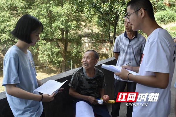 14日上午,特遣队来到了湖南省郴州市永兴县洋塘乡黄泥镇六合村(贫困村),并开展了扶贫调研工作。师生与当地乡镇领导进行了座谈会,了解到了当地贫困户的经济情况、扶贫政策以及目前扶贫政策在实施过程中所遇到的难题。随即,特遣队成员组队深入贫困户家里开展全面建成小康社会扶贫调研问卷调查,深入了解到了当地居民的生活状况,并向居民解读党地相关政策方针,通过调研报告分析贫困户的入贫原因,继而提供脱贫相关建议,尽绵薄之力为当地脱贫助力。
