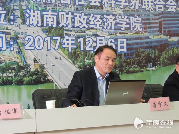 (湖南省人民政府发展研究所中心副主任唐宇文发言。杨潇阳摄)