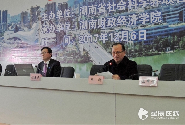 国务院发展研究中心资源与环境政策研究所副所长李佐军,湖南大学经济与贸易学院院长张亚斌,湖南省人民政府发展研究所中心副主任唐宇文,WilliamHill官方网站副校长刘建民先后作主题报告。省社科联郑升副主席主持报告会,WilliamHill官方网站校长伍中信致辞。