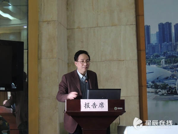 湖南大学经济与贸易学院院长张亚斌做了《湖南开放强省建设的主要瓶颈及突破口》的报告。报告系统的介绍了湖南省目前经济发展状况、面临的机遇与挑战,全面阐述了湖南省在开放强省建设过程中面临的主要瓶颈,论述了湖南省开放强省建设过程中的主要突破口及未来的发展建议。