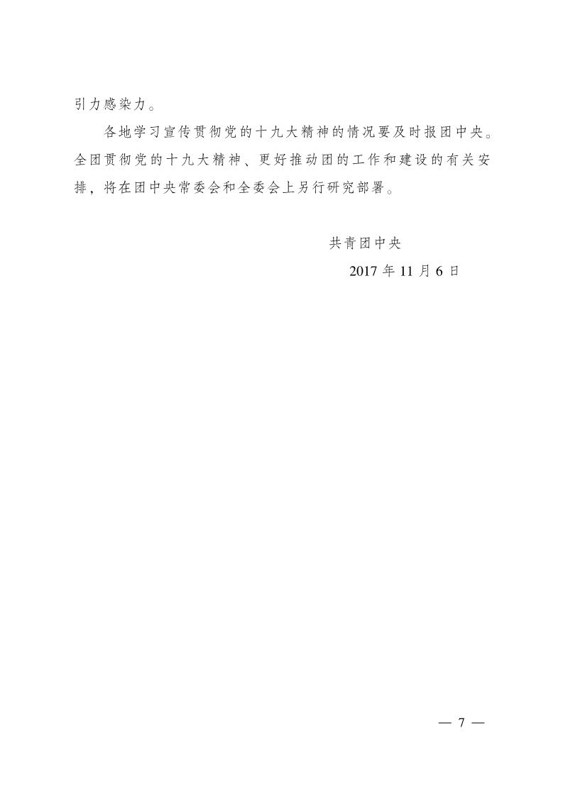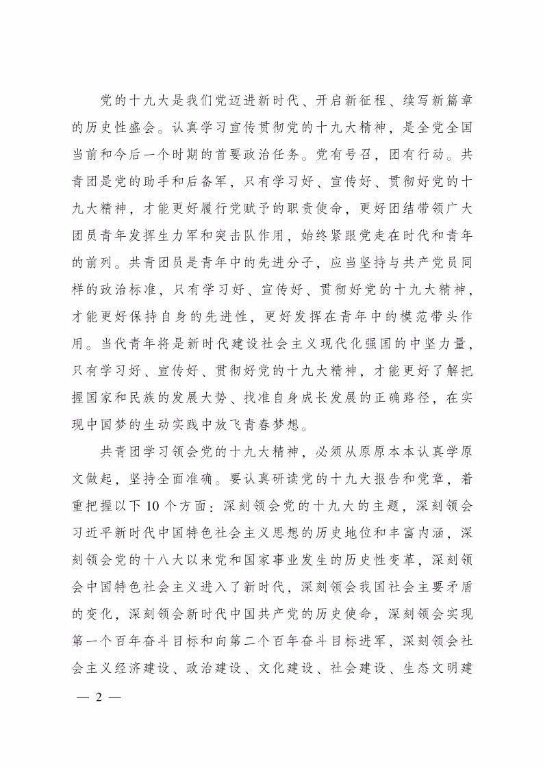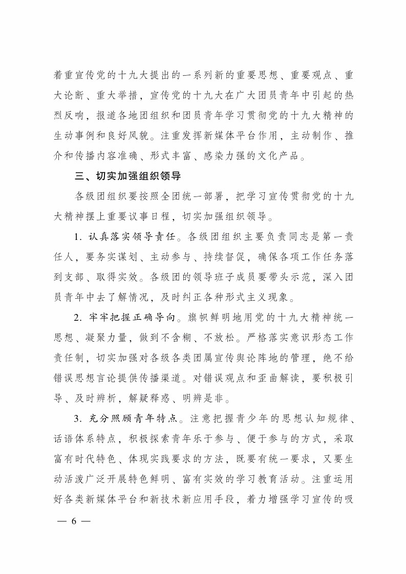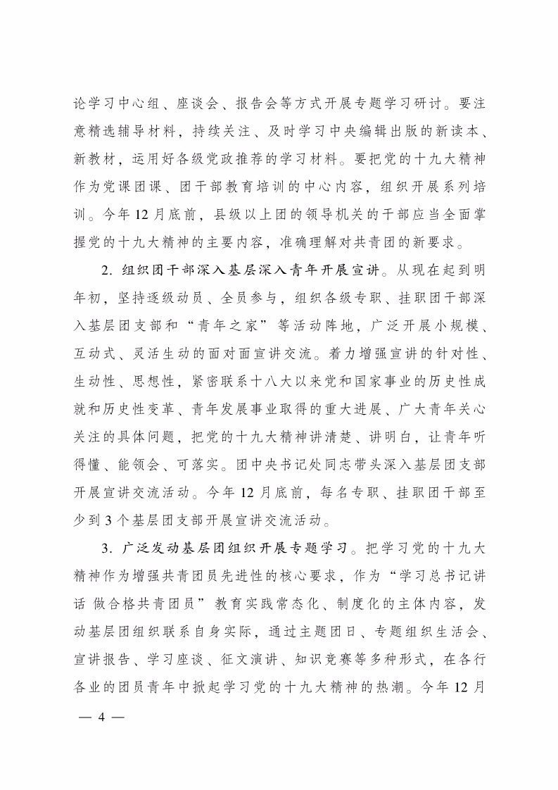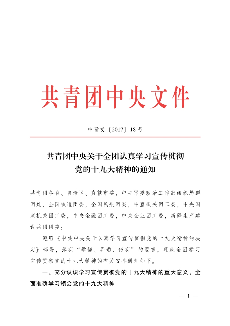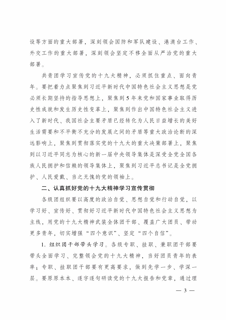共青团中央关于全团认真学习宣传贯彻党的十九大精神的通知