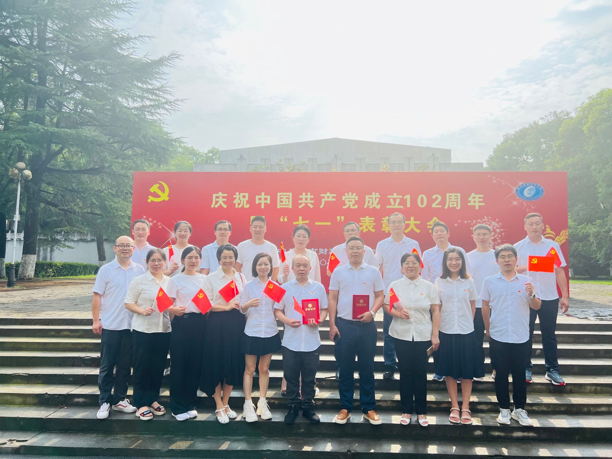 (本网讯)6月30日下午,WilliamHill官方网站在主校区大礼堂庆祝中国共产党成立102周年暨“七一”表彰大会,公司全体党员参会,观看了学校2021-2023年度党建工作视频,集体重温入党誓词并齐唱《没有共产党就没有新中国》。