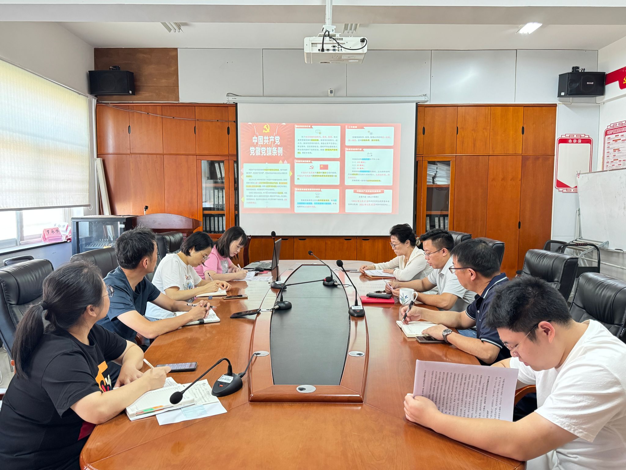 雷绪斌对《中国共产党党徽党旗条例》进行了深入细致的领学,重点对党旗党徽的使用情形、适用场合等规定进行了深入阐释。