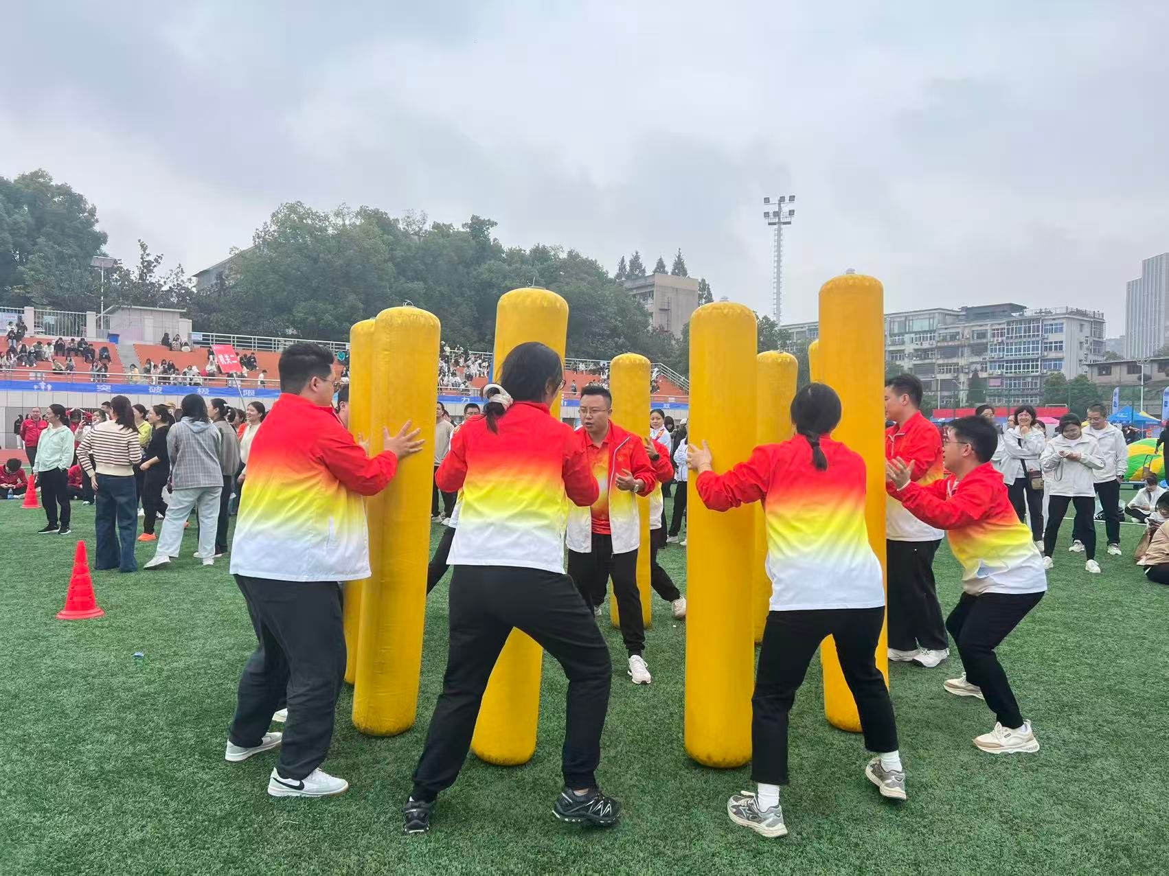 此次趣味运动会集竞技性、趣味性和协作性于一体,设置了“鸿运当头”“车轮滚滚”“薪火相传”“迎面接力”四个团体项目,既考验个人技巧,更强调团队协作。