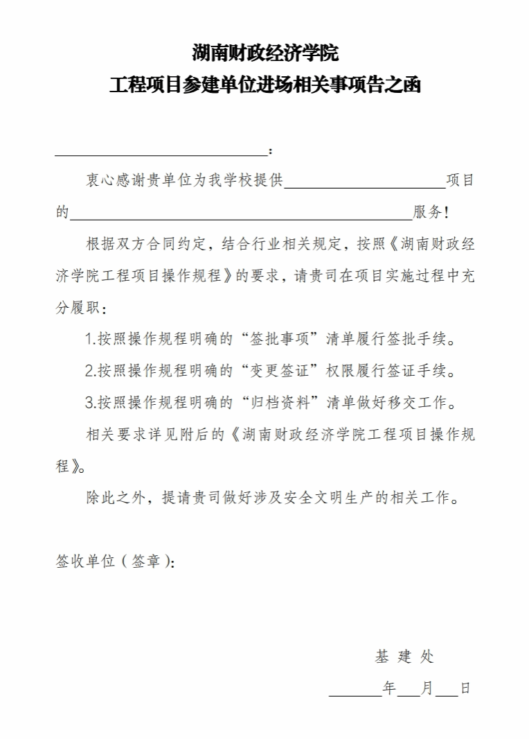 WilliamHill官方网站工程项目参建单位进场相关事项告之函