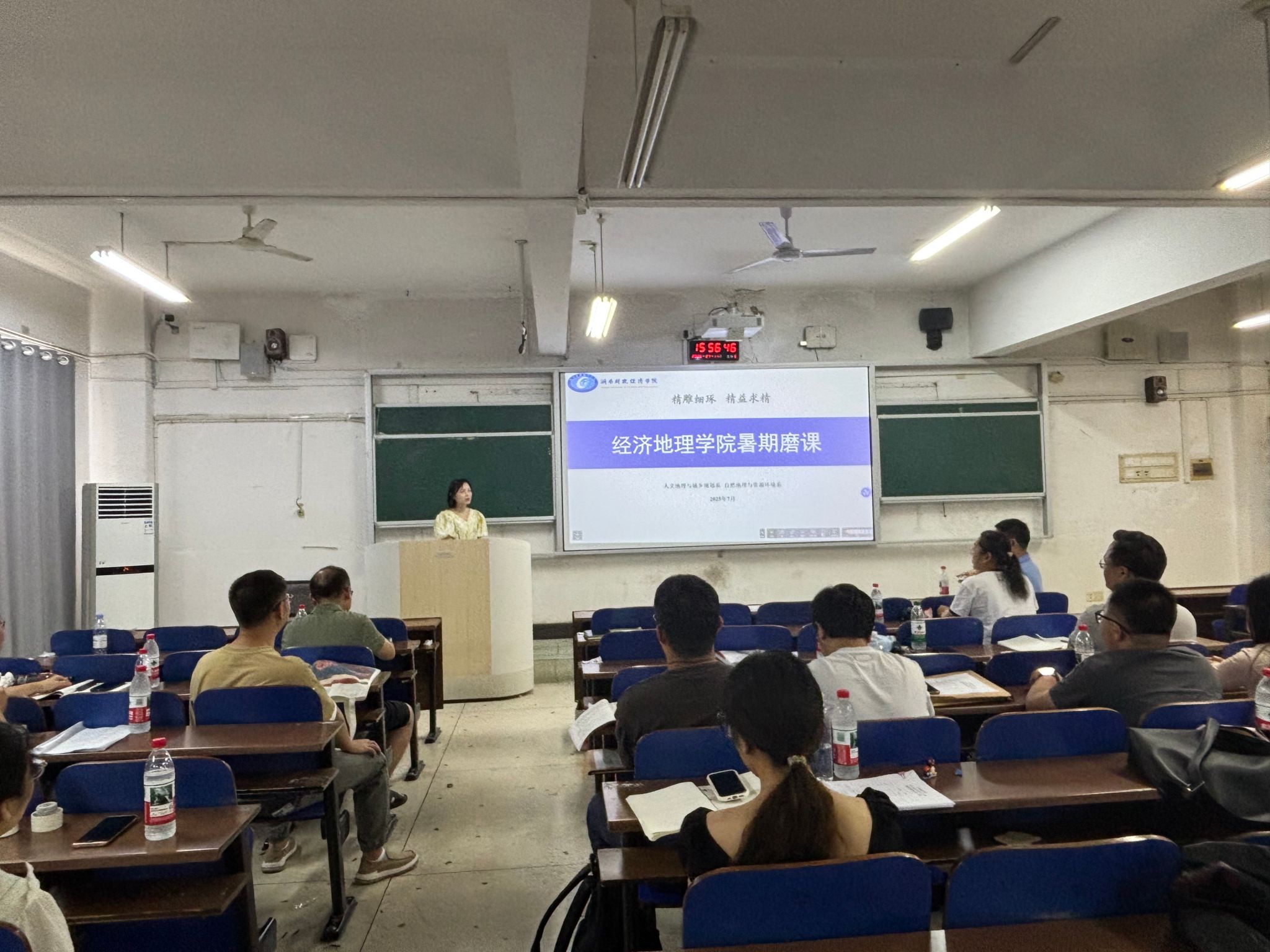 (本网讯)为深入贯彻“专业强基、科技赋能、人文铸魂”理念,全面提升课堂教学质量与教师教学能力,经济地理学院于7月11日在主校区三教3210教室精心组织全体教师开展暑期磨课活动,旨在优化课程内容、创新教学方法与提升育人实效。