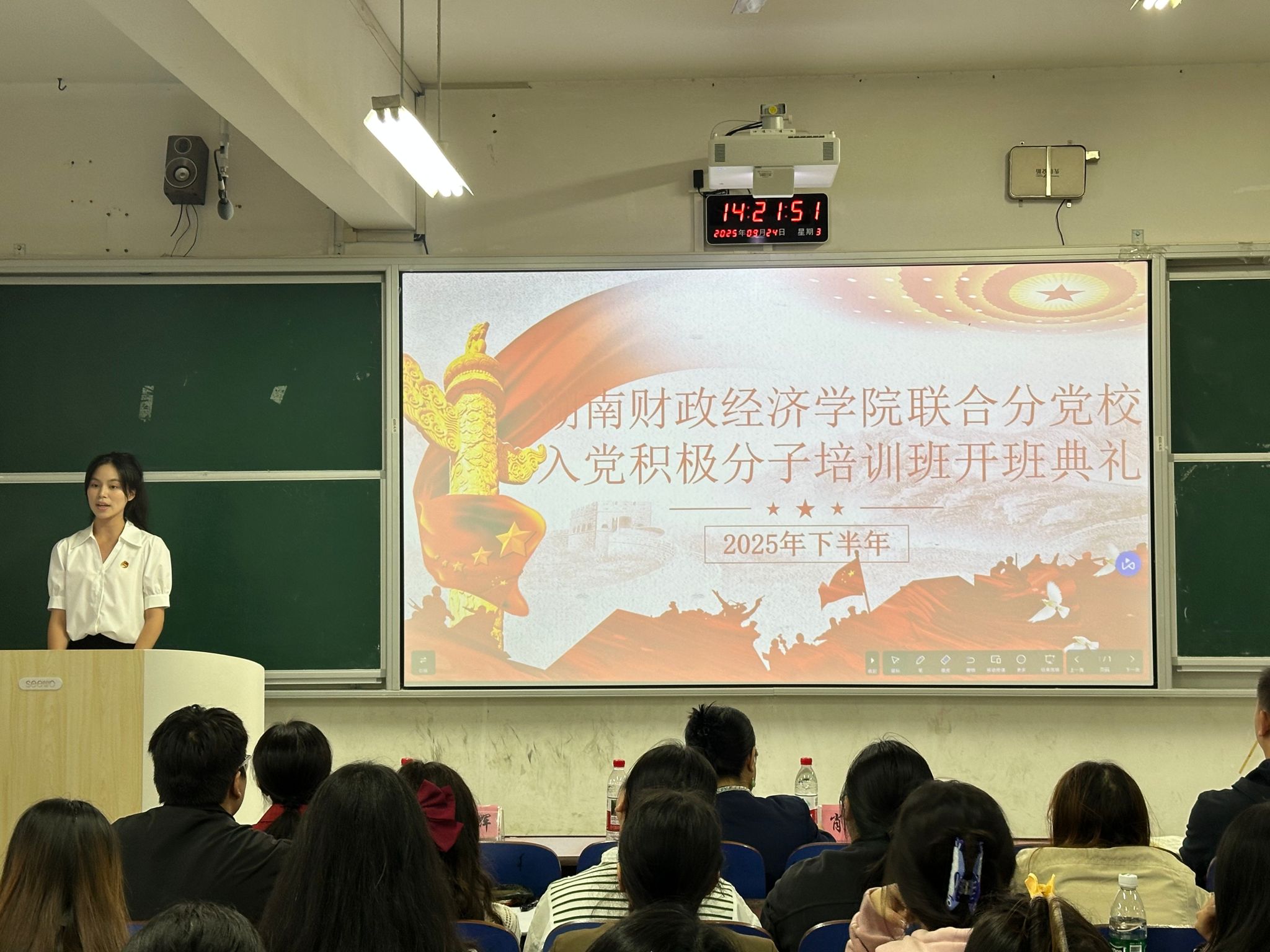 开班典礼在庄严的国歌声中拉开帷幕。刘娟介绍了本期培训班的基本情况,详细说明了课程安排、教学内容、纪律要求及考核标准,强调入党积极分子培训将坚持严格管理、注重过程、追求实效的原则,切实保障学习质量与培训成效。