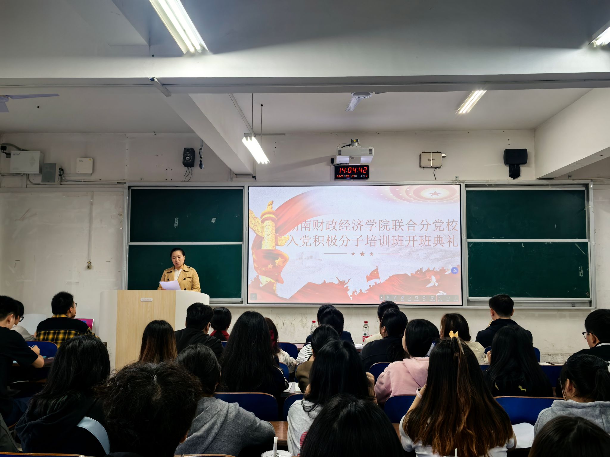 最后,开班典礼在全体人员齐唱《国际歌》中圆满结束。本次培训班的举办,是学校加强基层党组织建设、高质量推进党员发展工作的重要举措,旨在通过系统化、规范化的教育培训,帮助入党积极分子进一步端正入党动机,夯实理论根基,提升思想觉悟,为高校党组织培养输送政治坚定、素质过硬的后备力量。