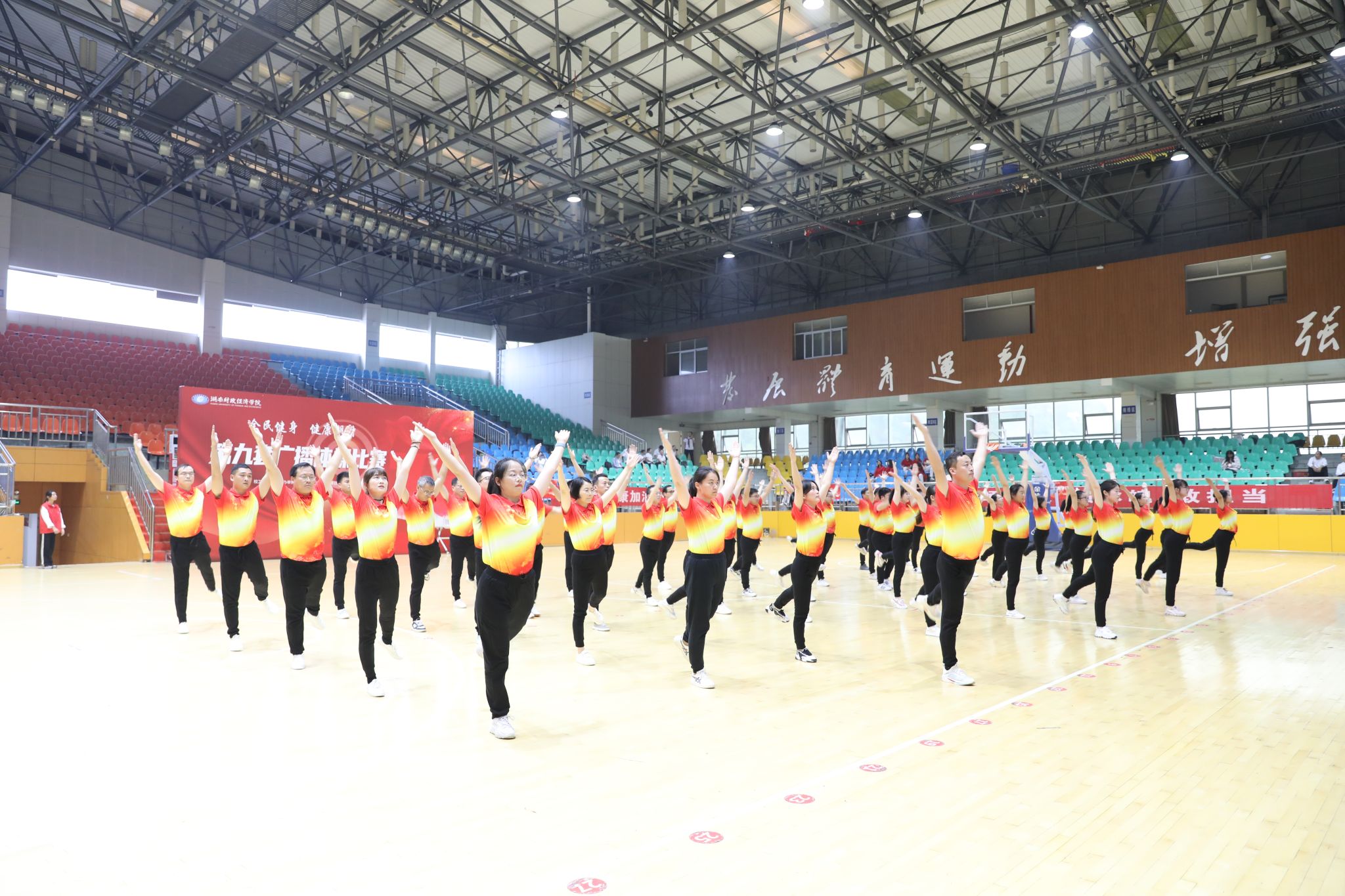 (本网讯)为大力推进教职工健身运动,丰富广大教师的业余生活,10月16日下午,由校工会主办,体育学院协办的“全民健身 健康湖财”2024年学校教职工第九套广播体操比赛于10月16日下午在主校区体育馆拉开了帷幕。全校共有18个分工会代表队参加比赛。