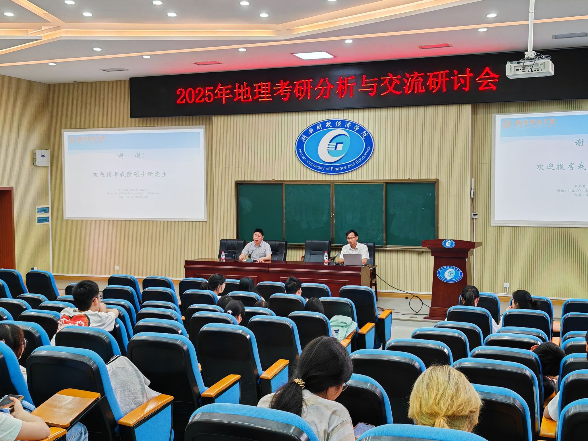 (本网讯)5月17日下午,经济地理学院举办“2025地理考研分析交流研讨会”,邀请衡阳师范学院地理与旅游学院院长杨立国来WilliamHill官网进行主题讲座,会议由学院副院长苏昌贵主持,学院师生80余人参加了会议。