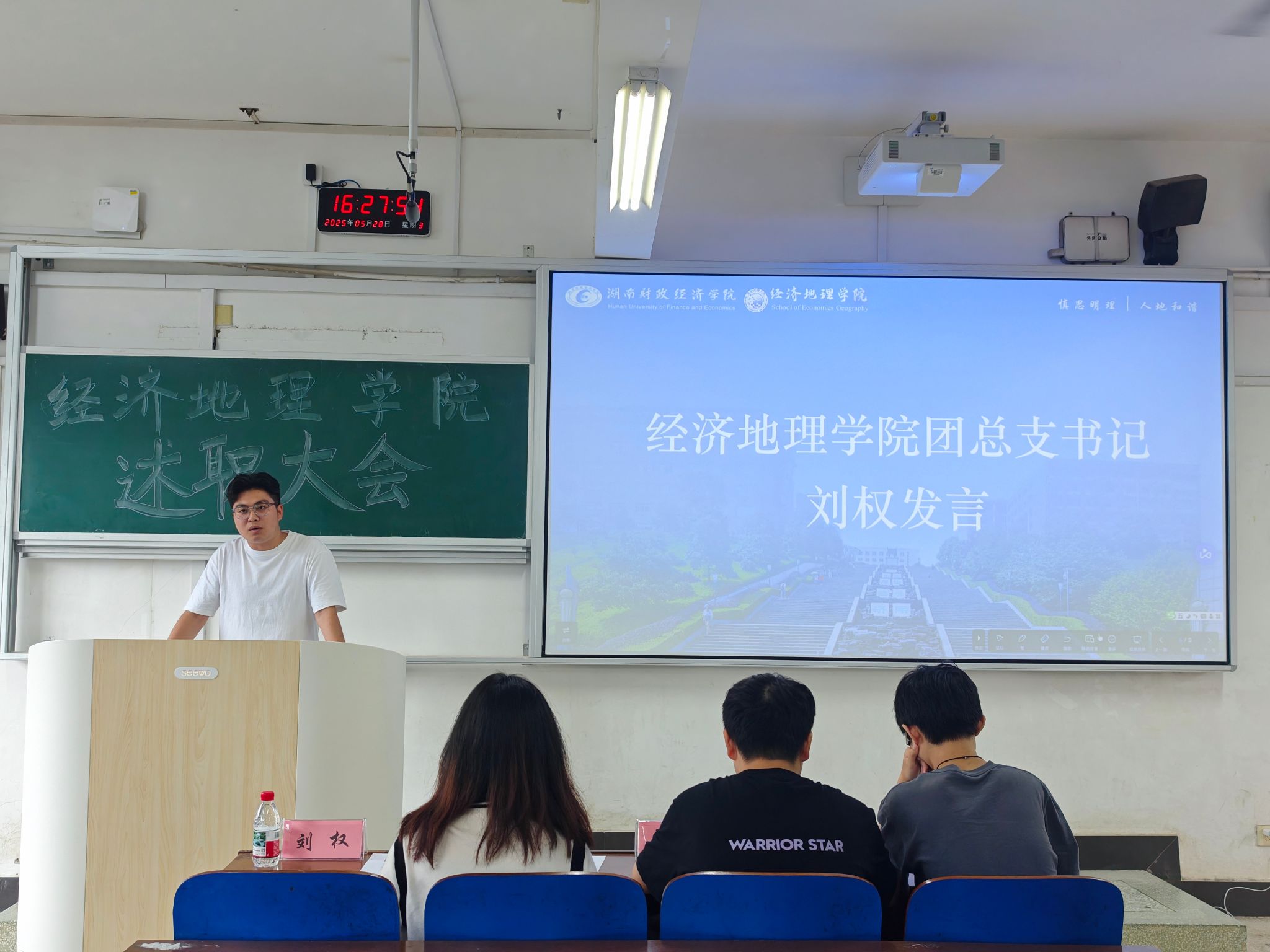 (本网讯)为全面总结学院2024-2025年度团学工作成果,提升团队协作能力,促进团学会各部门工作交流。5月28日,经济地理学院在主校区第三教学楼3404教室召开年度述职大会。院团总支书记刘权、团学会主席团成员及团学会各部门成员参会。
