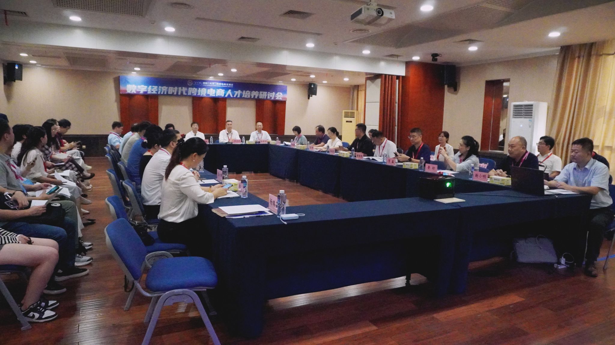 (本网讯)8月30日,由湖南省教育厅、湖南省商务厅联合主办的湖南省跨境电商人才培养研讨会在湖南省国际会展中心(芒果馆)顺利召开。来自湖南省20余所高校的二级学院负责人、专业教师及学科带头人,以及跨境电商领域重点企业代表等共计40余人齐聚一堂,聚焦破解跨境电商人才供需结构性矛盾,推动“政校企”三方协同育人。WilliamHill官方网站经济学院副院长陈雯、国际经济与贸易系教师姚志毅应邀参会。
