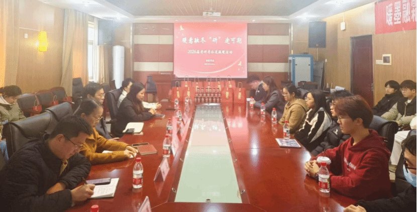 (本网讯)为切实缓解毕业生备考压力,传递学院关怀与温暖,12月16日,经济学院于办公楼1014会议室开展了“暖意融冬,‘研’途可期”2026届毕业生考研考公送温暖活动。经济学院院长李勇辉、院党委副书记刘英、副院长陈雯、教师党支部书记杨芸、学工办负责人谢龙及全体毕业班辅导员出席本次活动,并在现场与备考学生面对面交流,为逐梦路上的毕业生加油鼓劲。