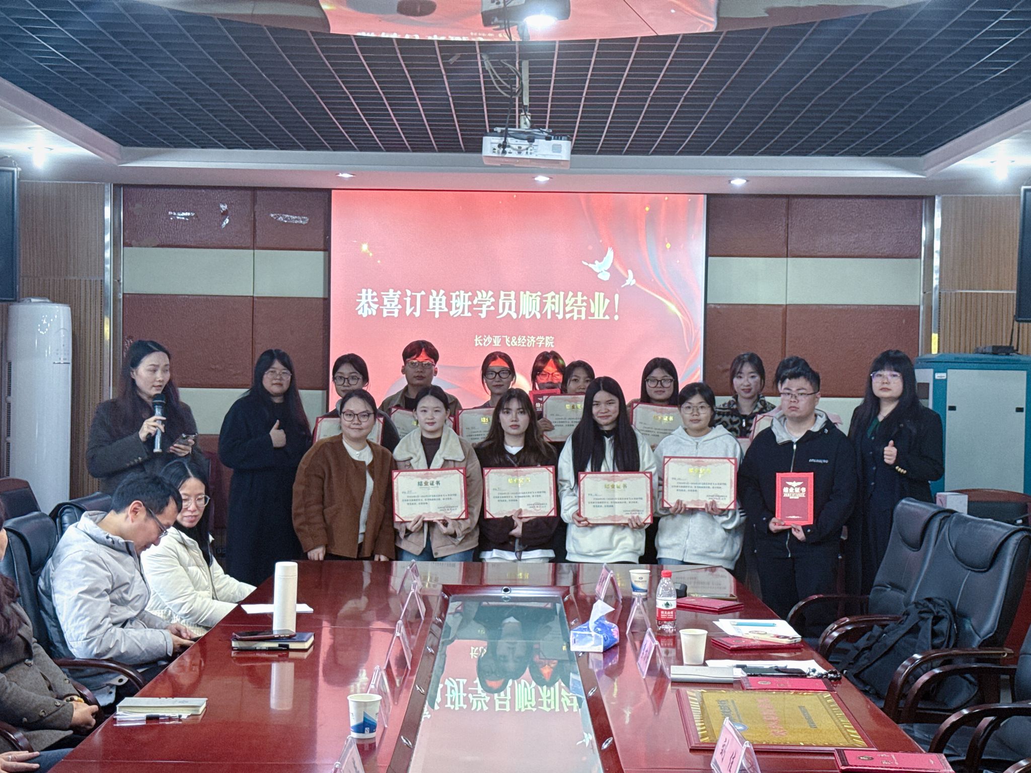 (本网讯)3月31日,经济学院与长沙市亚飞科技有限公司联合举办的校企合作订单班结业仪式暨现场招聘面试会在1014会议室顺利举行。学院党政班子、系主任、专任教师代表、企业代表参加了活动。