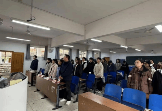 (本网讯)11 月 12 日下午,经济学院在主校区 3101 教室举办 2025 年下半年团校基础班开班仪式暨思政第一课。学院党委副书记刘英、学工负责人谢龙、团总支书记宋赛男、学生支部书记欧璐及团校全体成员出席了本次活动。