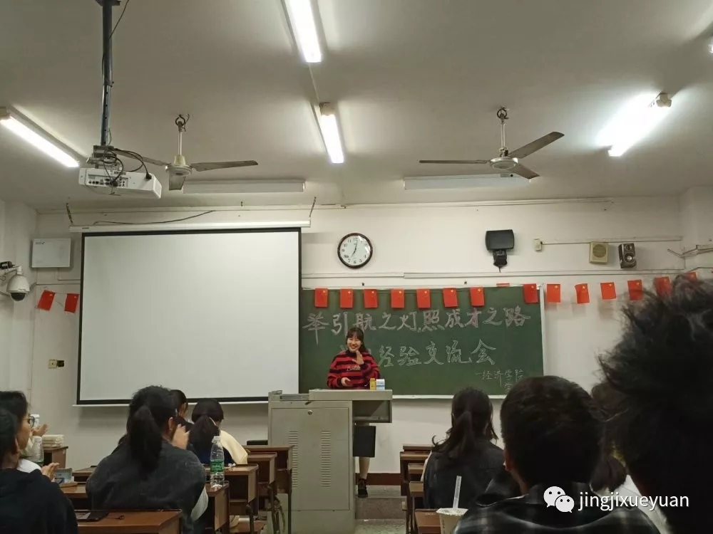 为了解答新生关于课内学习和课外活动的疑问,帮助新生更快适应大学环境,提升新生综合素质,2019年11月13日19: 0021: 00,经济学院团学会学习部在二教2316、2317、2402、2403、2405教室举办了“举引航之灯,照成才之路”经验交流会本次经验交流会经济学院党总支副书记刘英牵头组织,经济学院18级国贸五班吴玉姣、17级国商一班毛雪燕、18级商经一班朱红雨等综合能力突出的学生代表出席分享经验