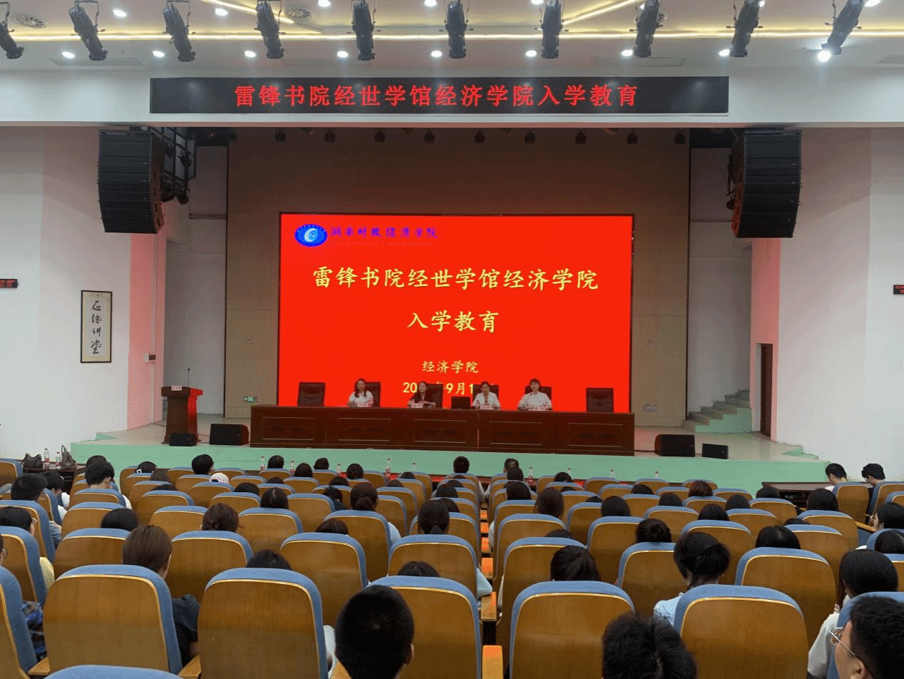 (本网讯)9月14日下午,雷锋学院经世学馆经济学院2024级新生入学教育大会在雷锋校区举行。院党委书记余华、副院长陈雯、党委副书记刘英、副院长彭千芮、各系系主任、教师代表、学生代表、带班辅导员及2024级新生参加会议。会议由彭千芮主持。