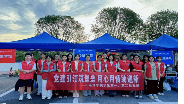 (本网讯)为充分发挥党建引领团建的作用,引导学生党员与团员青年积极践行服务精神,助力2025级新生顺利开启大学生活,经济学院于9月11日和12日,在雷锋校区组织开展了迎新活动。此次活动由学院学生第一、二党支部牵头,联合学院团组织共同举办,支部学生党员与团员青年积极参与,为经济学院的新生提供搬运行李、指引道路和解答疑问的服务。院长李勇辉、院党委副书记刘英、副院长陈雯、学工办负责人谢龙等学院老师深入迎新报到点,与新生及家长亲切交流,详细了解报到情况,并慰问奋战在迎新一线的工作人员和师生志愿者。