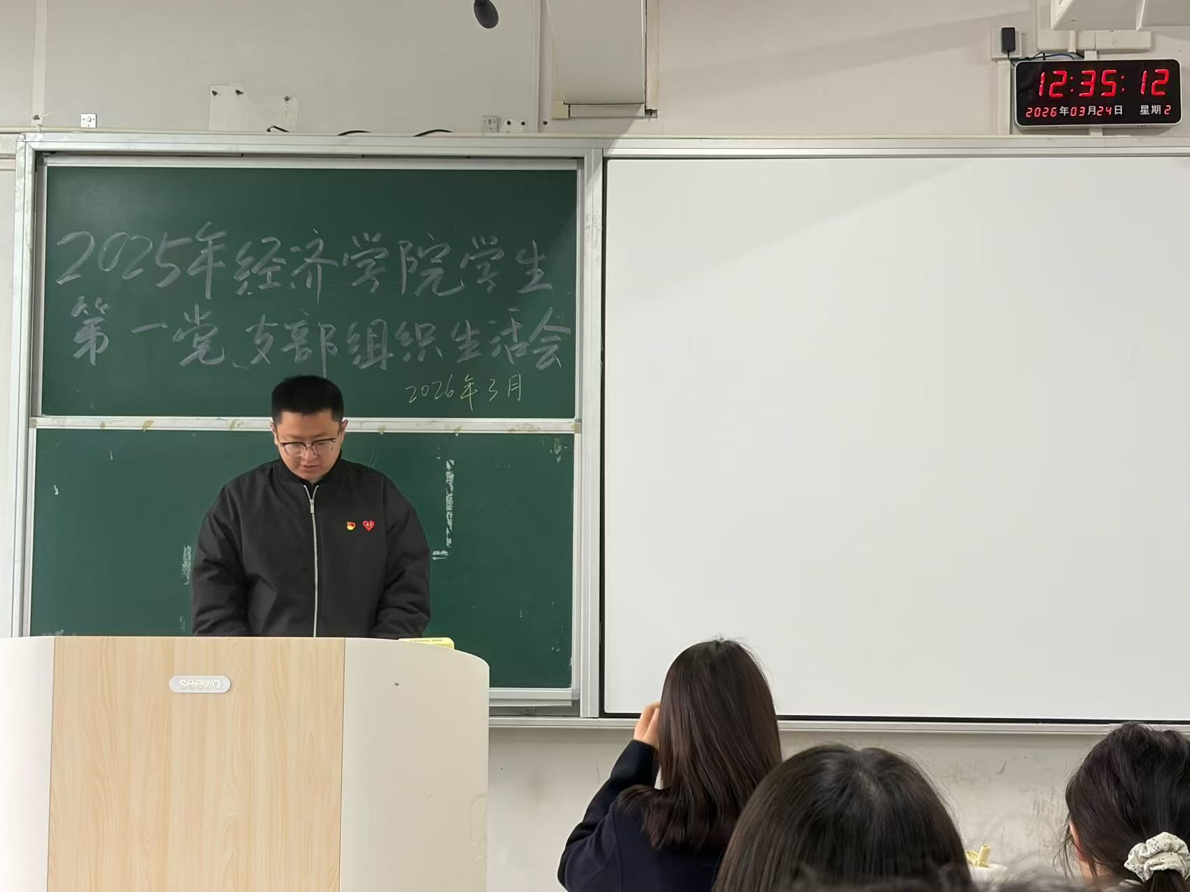 (本网讯)3月20日、3月24日,经济学院学生第一、二党支部分别召开 2025 年度组织生活会暨民主评议党员大会。经济学院党委副书记刘英、副院长陈雯到会指导,各党支部书记分别主持会议,全体学生党员参会。