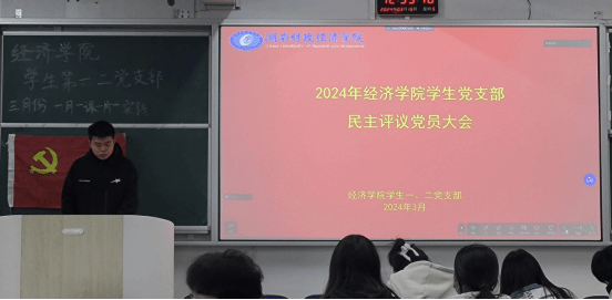 (本网讯)3月15日,经济学院学生第一、二党支部在主校区3111教室召开2023年度学生党支部民主评议党员大会。学生第一党支部书记谢龙、学生第二党支部书记李伦及支部全体党员参加会议。会议由李伦主持。