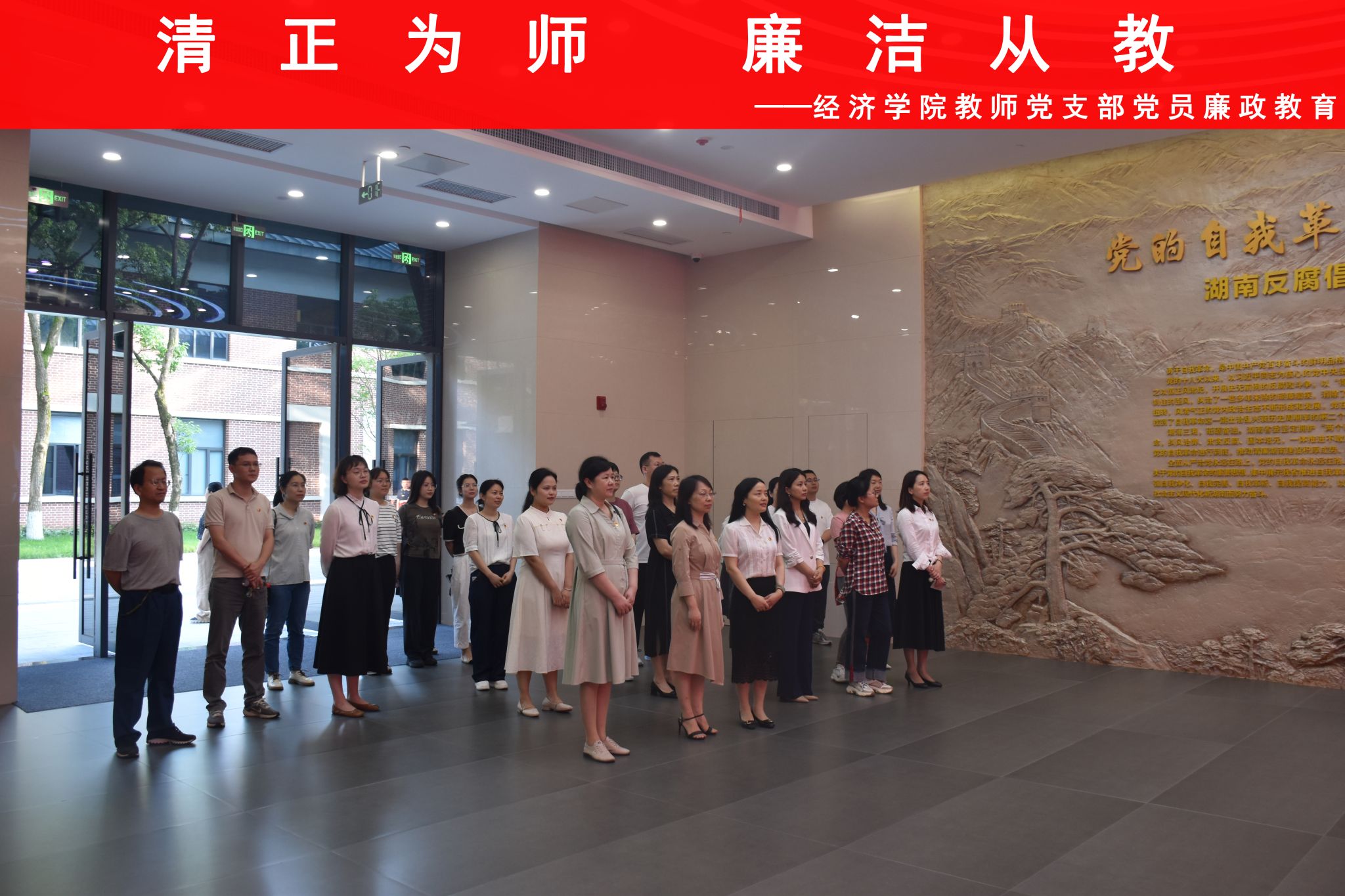 (本网讯)为深入开展“清正为师,廉洁从教”廉政教育警示学习暨“学条例明党纪,强党性促担当”主题党日活动,强化教师党员的党性教育和廉政意识,5月23日,经济学院教师党支部全体党员前往中共湖南省委党校反腐倡廉警示教育馆,接受廉政教育的深刻洗礼。