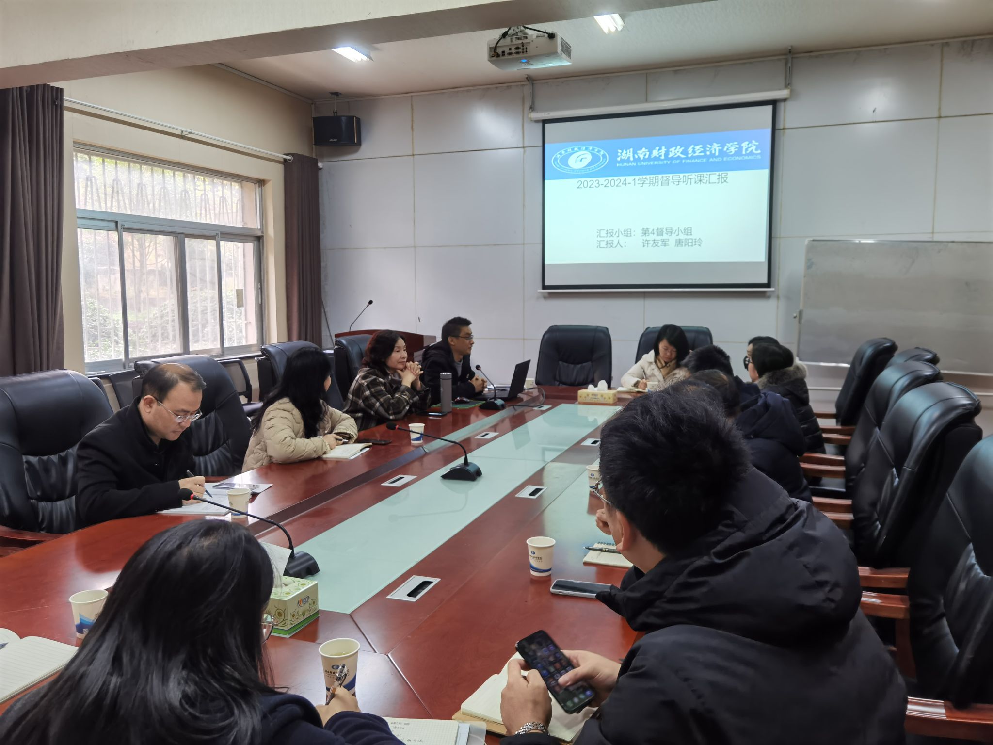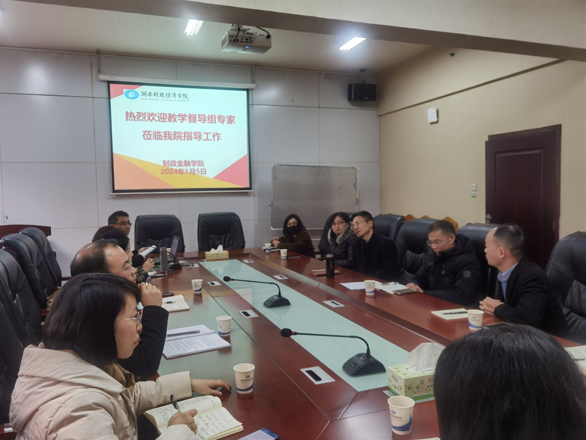2024年1月5日上午,财政金融学院在办公楼119会议室召开教学督导教学督查情况反馈会,就本学期对我院教学督查情况进行反馈。校督导组许友军、唐阳玲,质评处主任邓永红、副主任王依,学院院长刘辉煌,副院长罗四维、李艳丰,教科办主任贺文静以及各系部主任参加会议,会议由刘辉煌主持。
