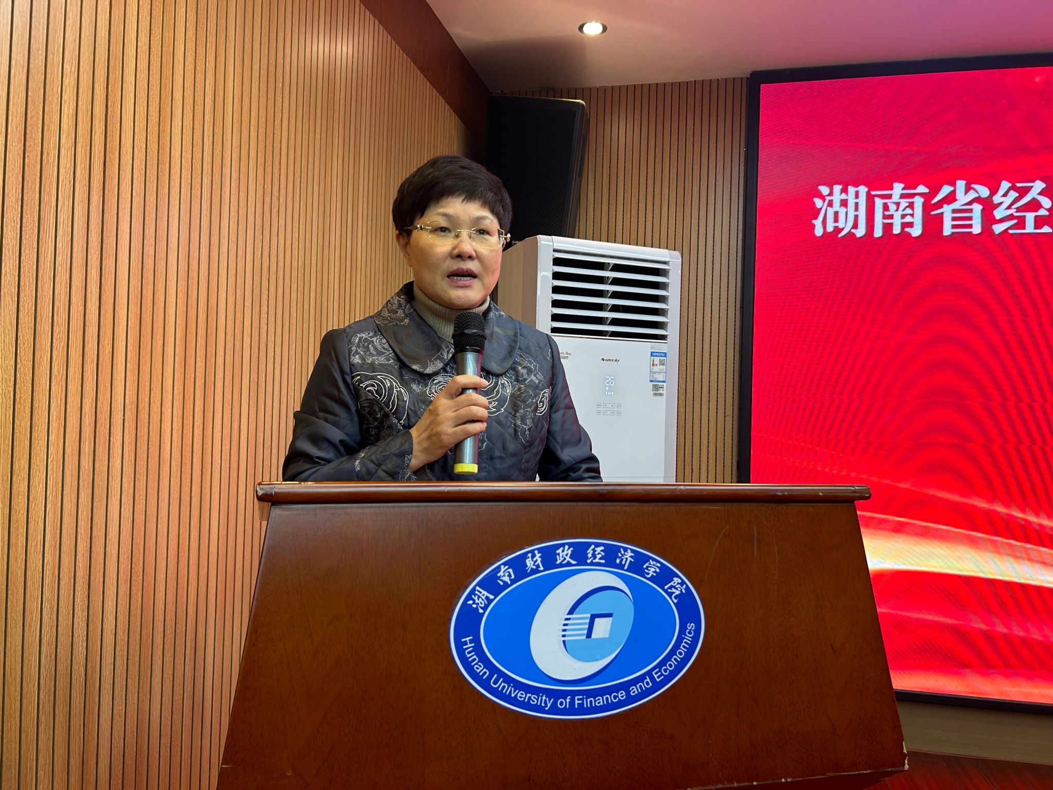 副会长兼秘书长欧定余教授总结2023年度学会工作,分别从持续加强党建工作、举办高水平学术会议、主动开展科学研究以及积极投入社会服务活动等多方面进行工作回顾。韩雷教授宣读会议论文评选结果,并对获奖论文作者表示祝贺。湖南省社科联党组成员、副主席贺建湘表示实现高质量发展需要完善的科技金融体系,积极探索金融强国的湖南模式。