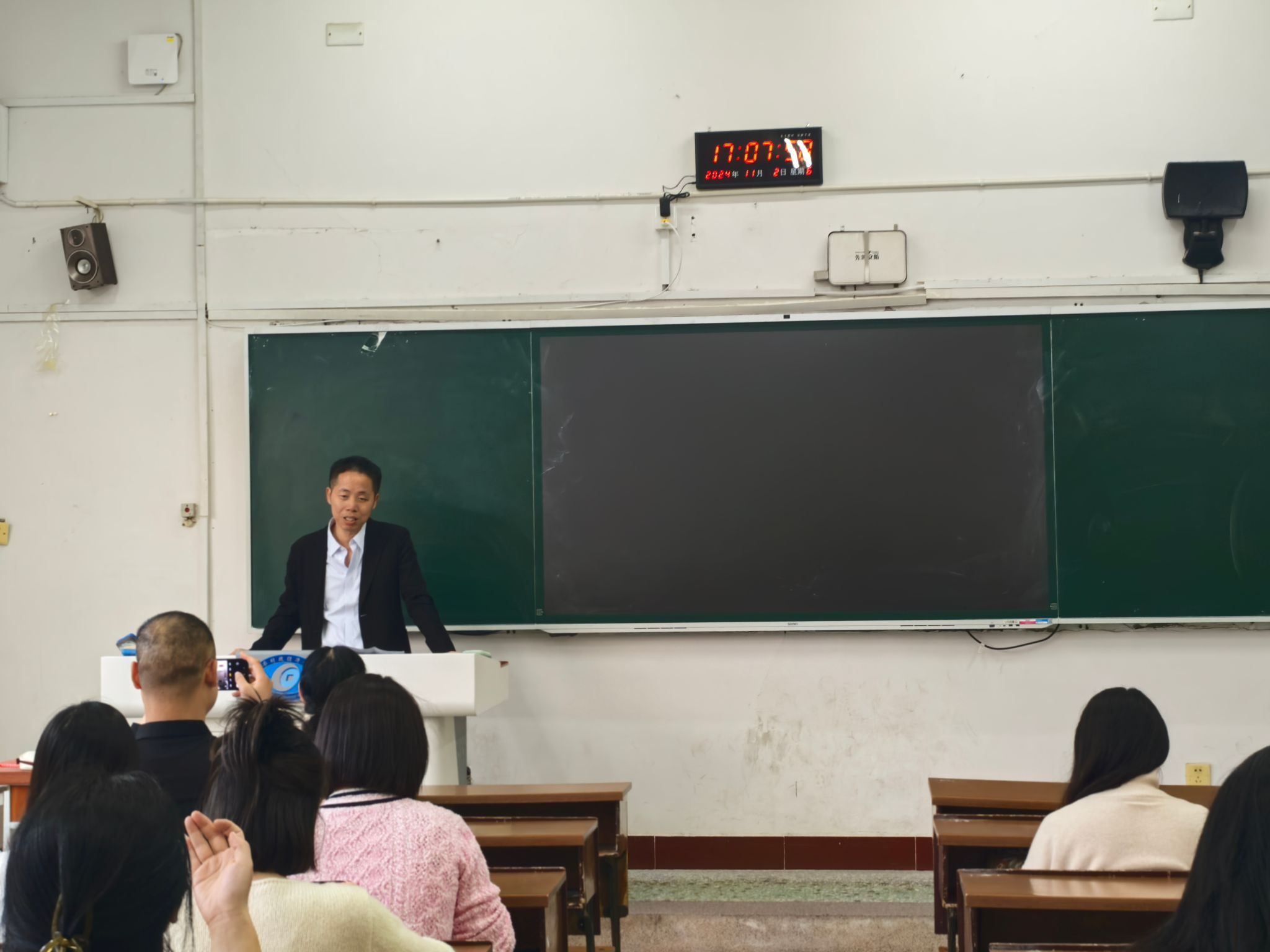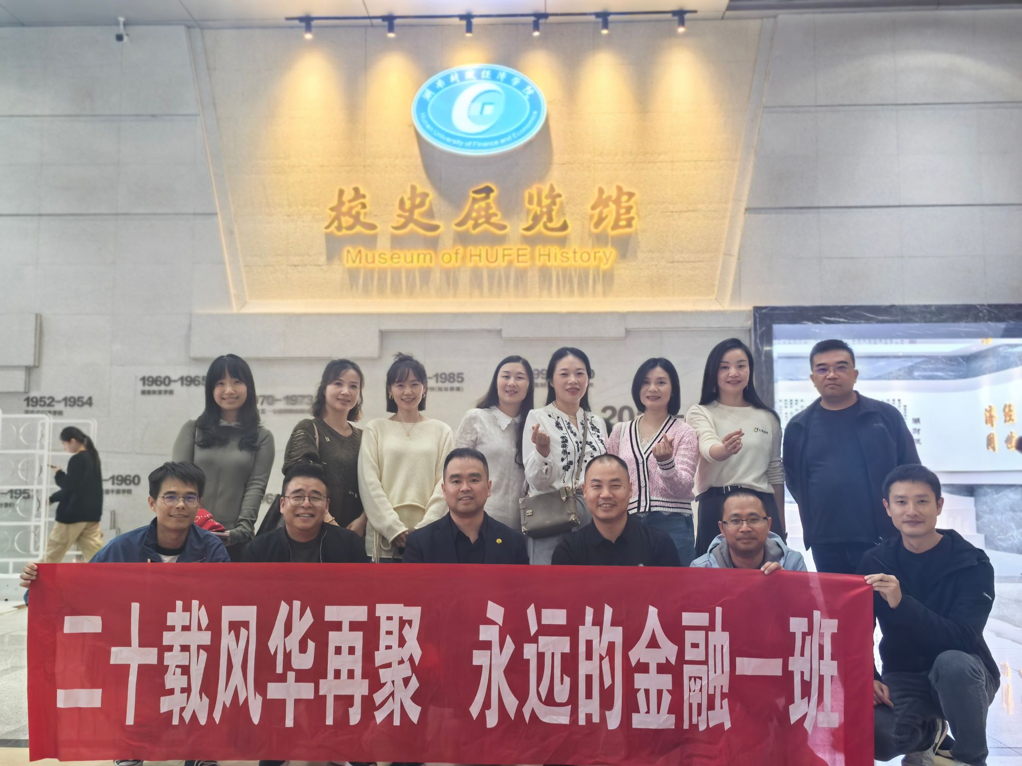 11月2日,2001级金融一班校友毕业20周年返校聚会。财政金融学院党委书记肖燕飞,时任办主任周星明老师参加活动。