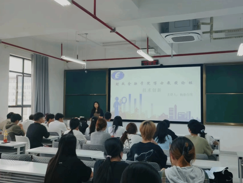 此次讲座包含三场报告。杨春白雪老师以“技术创新”为题,介绍了技术创新的含义、技术创新的不确定性、风险性、收益性、创造性等特征,向学生分享了国内外重大的技术创新案例和投资机会。