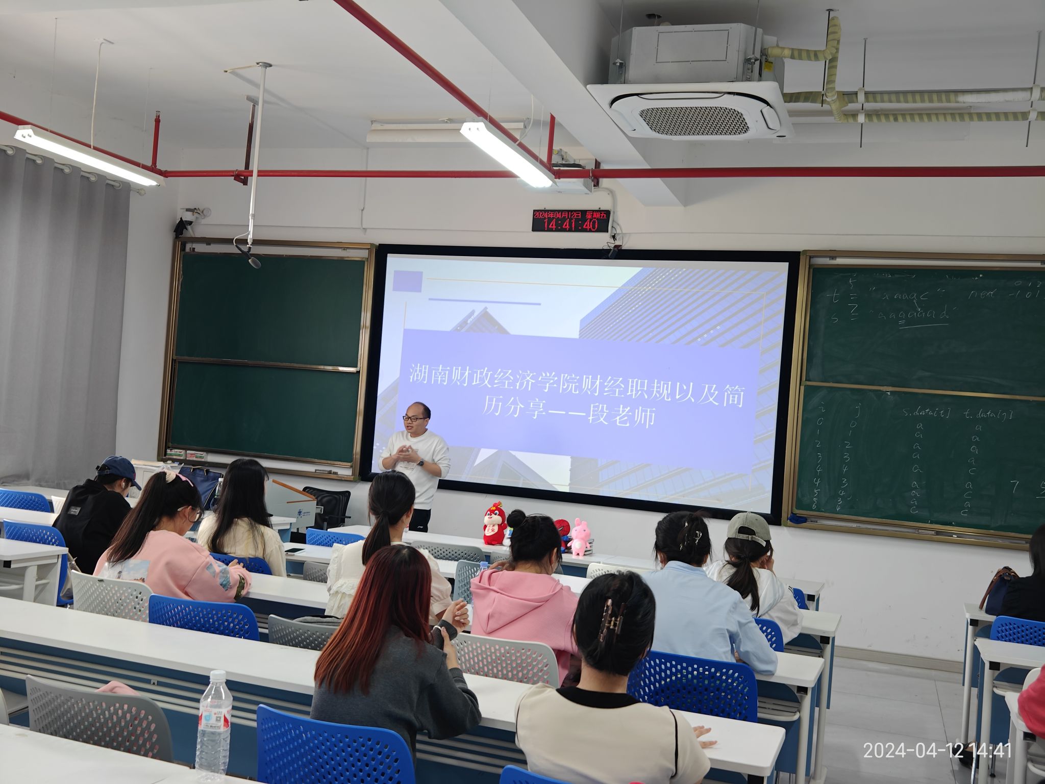 段老师有着丰富的金融行业从业经历和面试指导经验。他从金融财会就业方向、岗位要求、如何制作硬核简历以及大一学生应做的准备等几个方面做了详细讲解,并着重介绍了CFA&FRM证书对于大学生就业的积极作用。在段老师的引导下同学们纷纷举手提问,现场互动频繁,整场讲座生动有趣、干货满满。