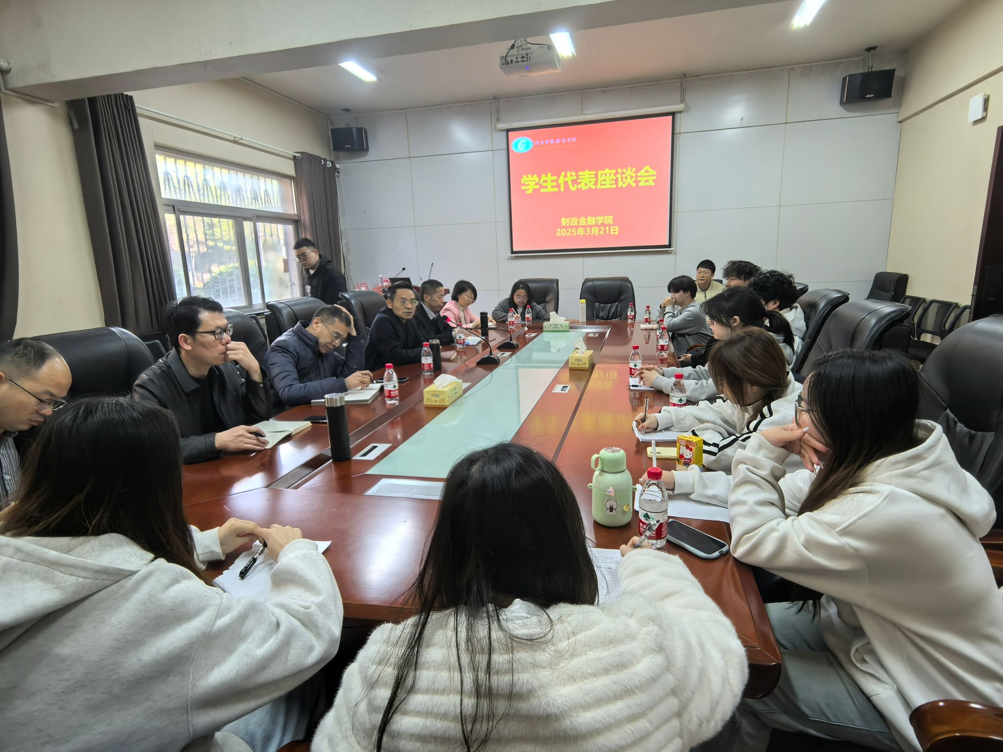 3月21日,为更好服务学生,提升教学质量,本着以社会所需,以学生所要的原则,财政金融学院在119办公室召开学生代表座谈会调研课程设置、人才培养方案改革等问题。财政金融学院院长刘辉煌,书记肖燕飞,副院长罗四维、李艳丰、黄华军,教务办主任贺文静,综合办主任张文,各年级各专业学生代表参加此次座谈会,会议由刘辉煌主持。