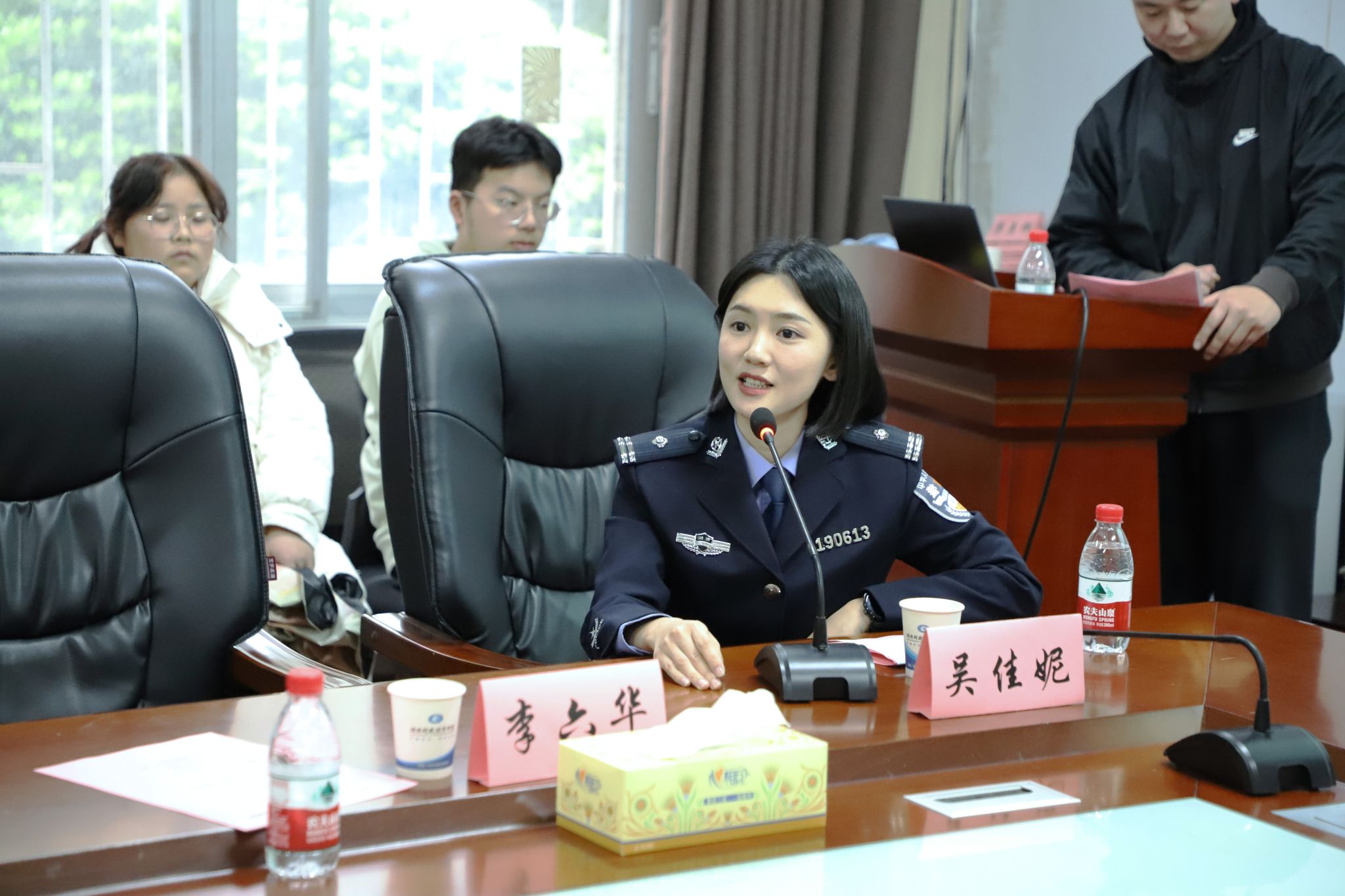 接着,吴佳妮警官以“非典型公务员”的视角,结合自身从中南大学新闻系学子到支教志愿者、自媒体创业者再到公安民警的跨界经历,为现场学生提供了成长规划的全新思路。她坦言,自己并非“天选打工人”,而是通过主动探索和不断试错,逐步找到适合自己的职业方向。“人生没有白走的路,所有主动选择都会滋养你。”“利他,才是最高级的自律。”活动中吴佳妮警官金句频出,掌声不断,她认为大学期间可以通过兼职、实习、创业及参与公益活动等方式,进行多维度尝试,了解自身优势,选择适合的职业路径。凭借所学新闻专业优势,她在工作中创新宣传方式,其拍摄的反诈视频被国家反诈中心转载,参与录制的《守护解放西》第五季更是赢得全网关注。她建议与其纠结专业对口,不如创造错位优势,用跨界思维打开职业空间。“学姐的经历让我明白,共情力不是基层工作的负担,而是优势。”财政金融学院一位大二学生分享道。