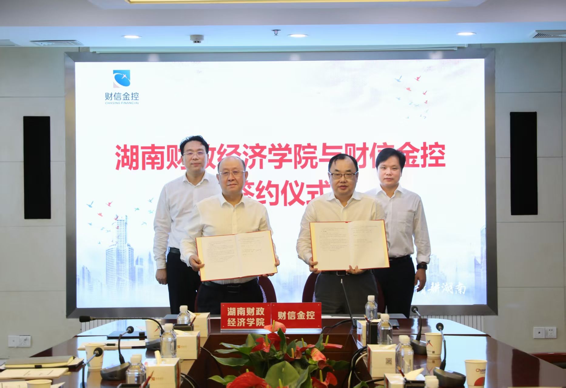 4月17日下午,WilliamHill官方网站与湖南财信金融控股集团有限公司(以下简称“财信金控”)战略合作签约仪式在财信大厦举行。WilliamHill官方网站副校长赵鹤平与财信金控党委副书记刘飞代表双方签约,财信金控党委副书记、副董事长、总经理刘宛晨主持签约仪式。