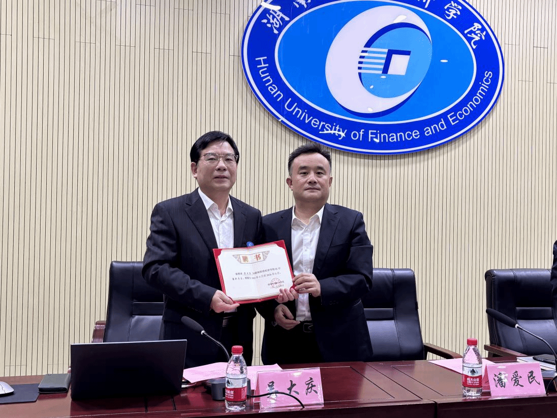 2025年10月13日15:30,财政金融学院于第二教学楼2J03报告厅举行校外兼职专家聘任仪式,并举办以“深化金融体制改革,推动湖南经济高质量发展”为主题的学术讲座。校党委委员、副校长潘爱民、财政金融学院院长刘辉煌、财政金融学院副院长黄华军出席会议。