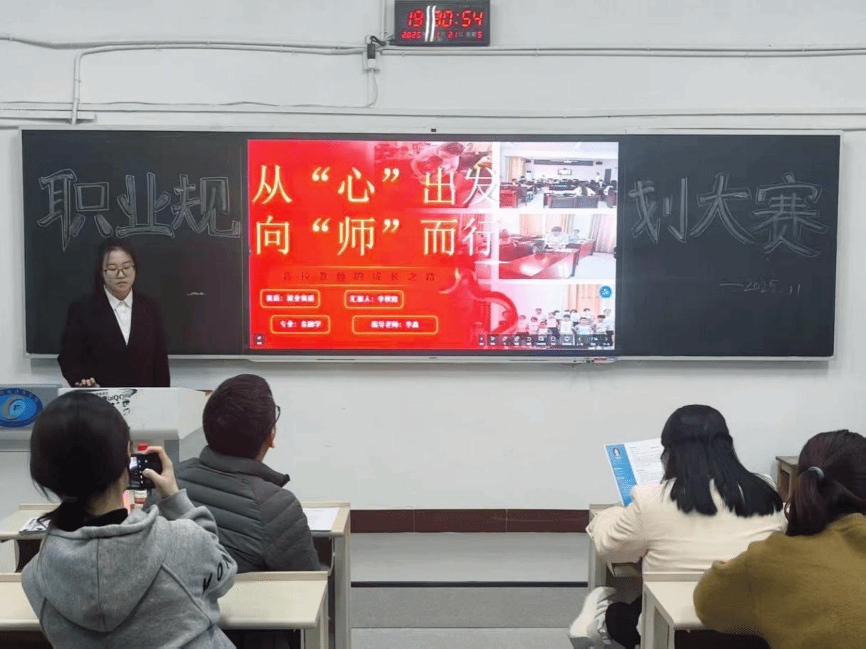 11月21日晚,第三届职业规划大赛财政金融学院院赛在2112、2113会议室圆满落幕。职业规划竞赛以“立足专业赛道、锚定职业方向、赋能未来成长”为导向,不仅为财政金融专业学子搭建了职业探索与能力展示的优质平台,更助力学生明晰发展路径、提升就业核心竞争力,彰显了学院“以赛促学、以赛育人”的人才培养理念。
