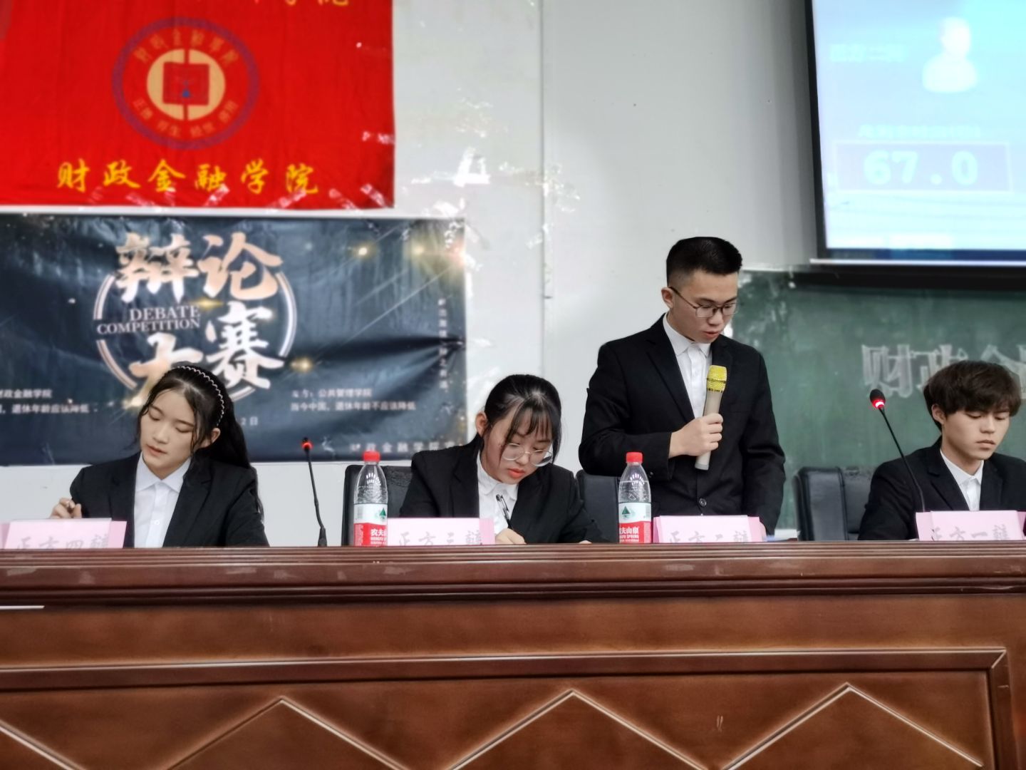 (本网讯)10月12日晚,财政金融学院与公共管理学院在2J01共同举办了一场主题为“当今中国,应不应该降低退休年龄”的辩论赛。出席本次活动的嘉宾有公共管理学院党总支副书记李茂华、财政金融学院辅导员周雄艳、龚若愚...