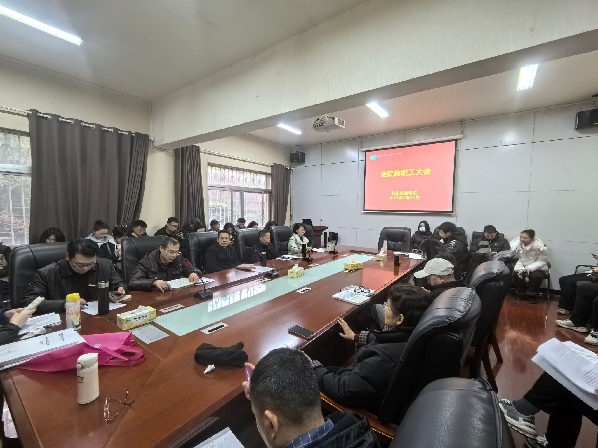 为保证新学期教学的工作平稳有序和教学秩序的正常运行,2月24日上午8点,财政金融学院院长刘辉煌带领各系主任深入教室随堂听课,随后于办公楼119会议室召开2025年春季新学期开学专项教学督查座谈会。院长刘辉煌,书记肖燕飞,副院长罗四维,副院长黄华军,教务办主任贺文静,学工办主任易好及各系主任参加会议,会议由刘辉煌主持。刘辉煌就我院平稳有序组织开学工作对全院人员进行了充分的肯定,对课堂教学的内容与方法表示高度认可。...
