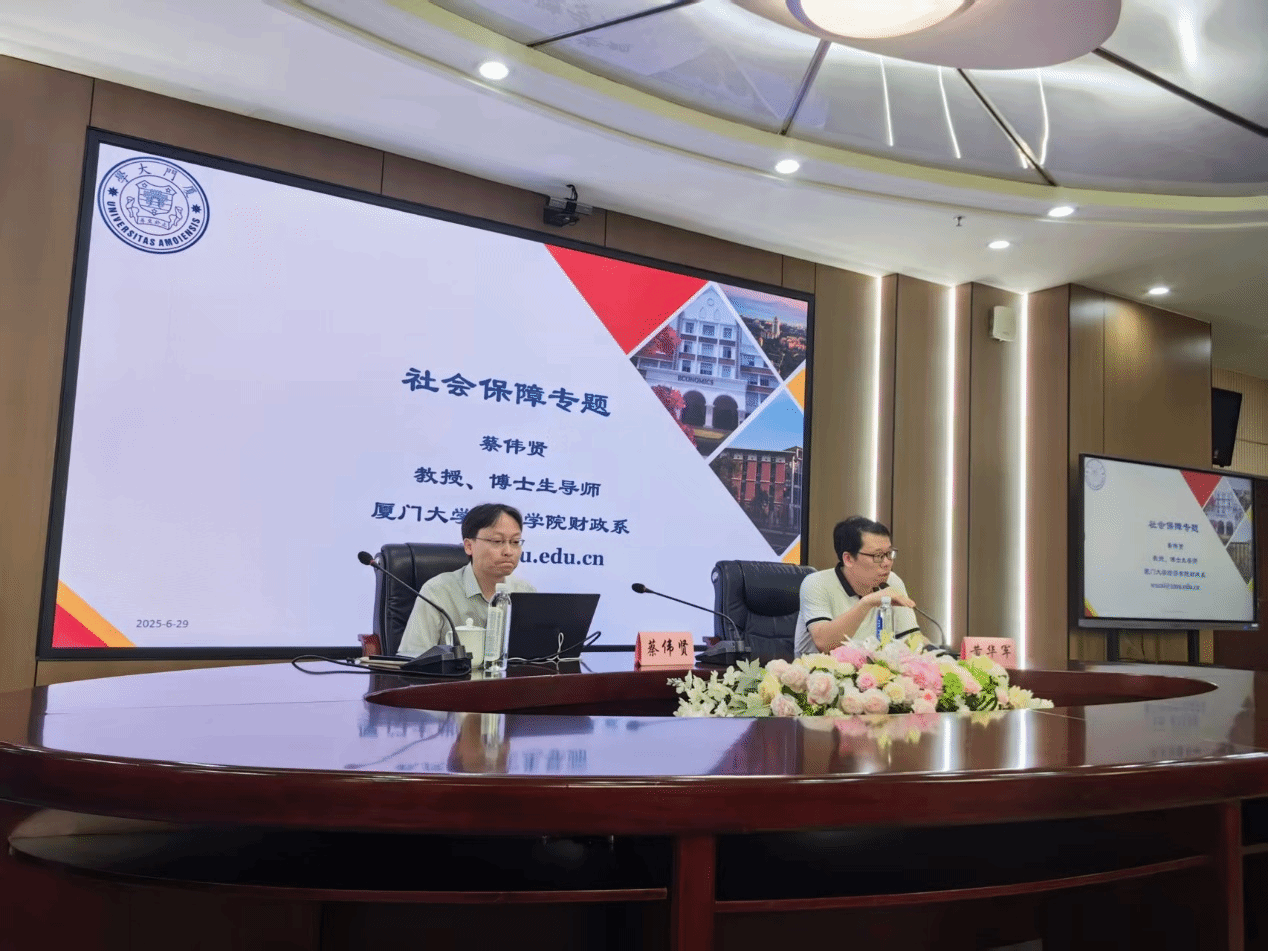 2025年6月29日下午,厦门大学经济学院蔡伟贤教授应财政金融学院邀请,在办公楼五楼视频会议室作“社会保障专题“讲座。讲座由财政金融学院副院长黄华军主持,校内外老师、学生100余人参加。蔡伟贤详细介绍了社会保障的内涵、税收学与社会保障学的关系、社会保障体系建设与发展模式转型的基本框架。他提出社会保障体系建设和完善是实现我国经济发展目标和提高经济驱动力的必然要求。我国社会保障水平仍存在提升空间,如何健全和完善我国社会保障体系需要大家共同思考。...