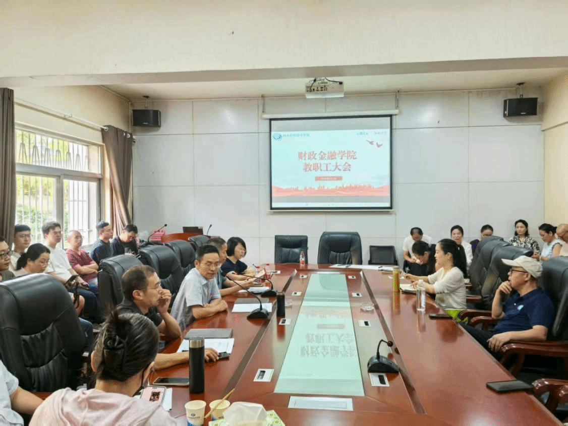 2025年9月2日下午,财政金融学院在办公楼119会议室召开新学期第一次全院教职工大会,会议由院长刘辉煌主持。刘辉煌院长向全体教职工传达了2025年学校办学思想大讨论与校党委书记易棉阳“以发展的办法解决发展中的问题”主题报告的主要内容和思想,要求全院教职工认真学习和领会易棉阳书记结合学校发展实践提出的“创新、协调、绿色、开放、共享”五大发展理念和要求,坚守财经底色、强化应用特色、厚植红色人文以及“专业强基+科技赋能+...