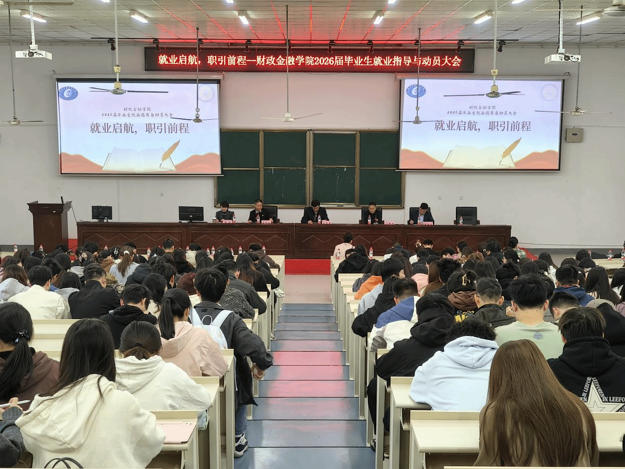为切实帮助2026届毕业生强化就业意愿、明确就业方向、提升就业竞争力,2025年10月23日,财政金融学院组织全体毕业生在2J01教室隆重召开“就业启航,职引前程”毕业生就业指导与动员大会。会议邀请了学校招生与就业指导中心主任刘振强、中国民生银行湘江新区支行行长张弦、优秀校友代表欧红生到会指导,学院院领导、各系主任、全体专兼职辅导员(班主任)参加了本次会议。会议由院党委书记肖燕飞主持。大会现场 贺慧真/摄学校招生与就业指导中心主任刘振强围绕大学生为什么要就业、...