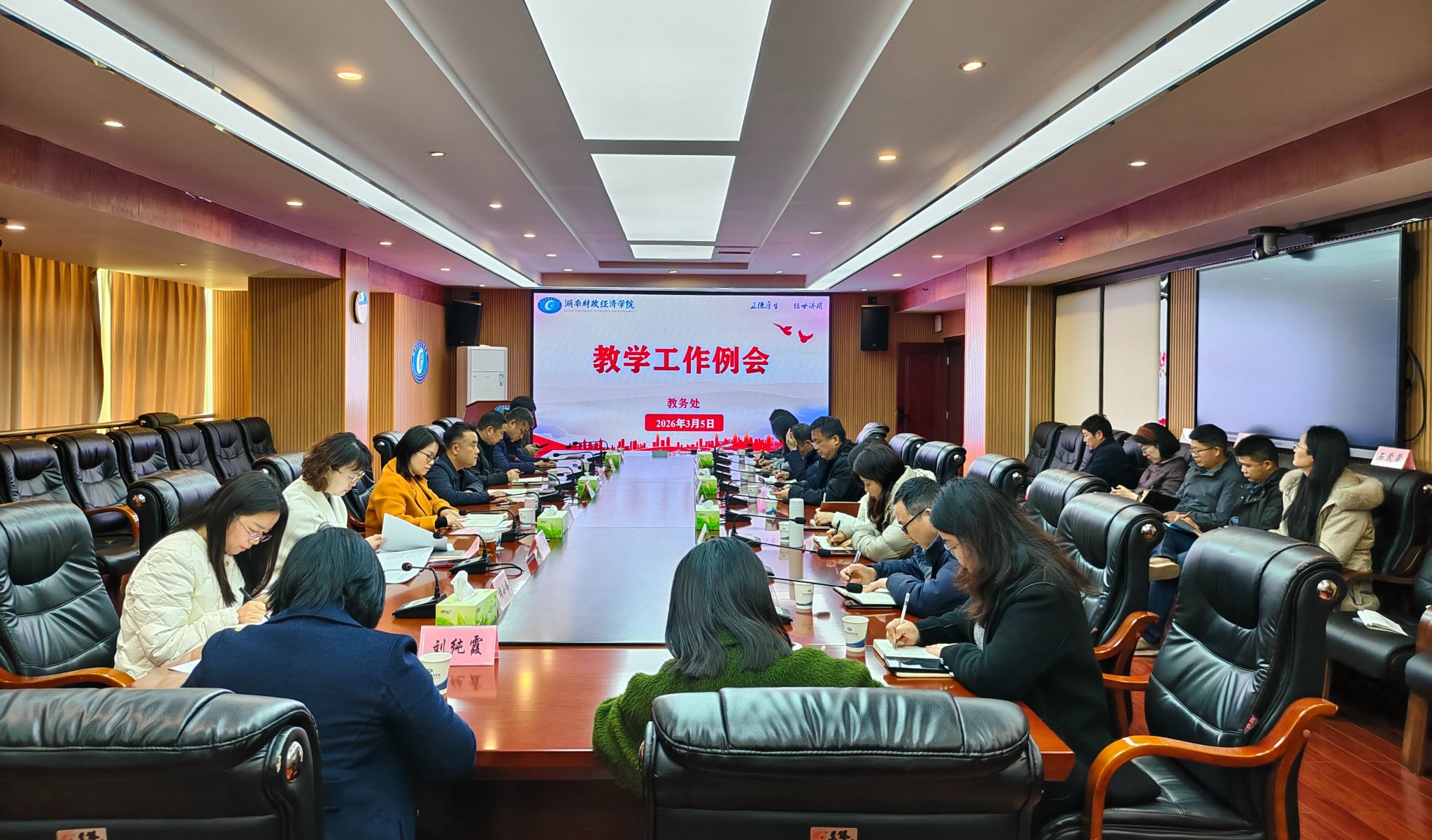 2026年3月5日下午,学校在办公楼715会议室召开教学工作例会,会议由校党委委员、副校长潘爱民主持。教务处相关人员、学生工作部负责人及各二级学院分管教学工作的副院长参加了会议。会上,欧阳海峰部长汇报了学工工作部春季开学准备情况及开学后的相关工作布置;教务处郎琳副处长汇报了开学督查工作及2022级学生毕业资格初审工作的安排;彭千芮副处长汇报了实践教学、教研工作等相关内容;李宁副处长汇报了雷锋书院新学期教学相关的工作。...