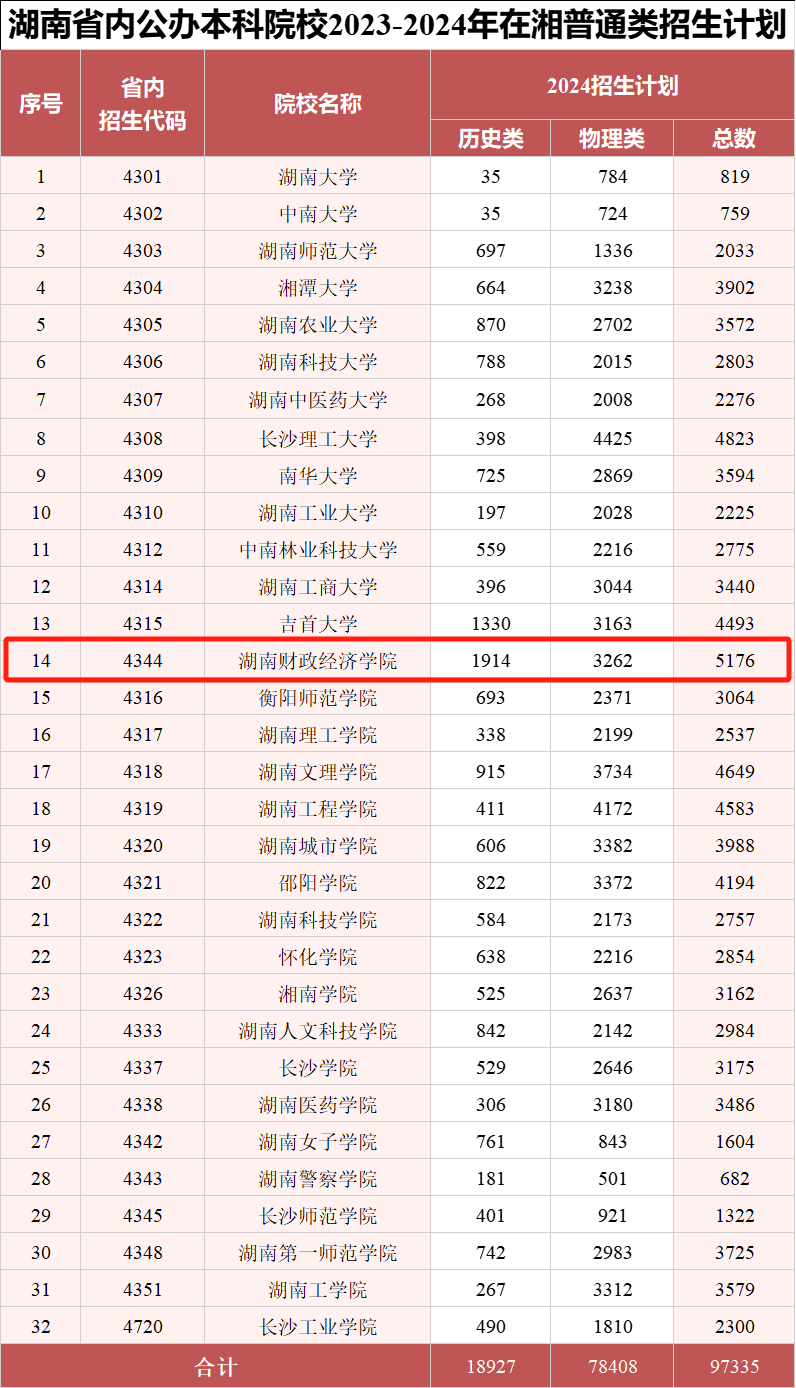 2024年,WilliamHill官方网站总招生计划为6140个,其中在湖南省内招生5466名,历史类普通招生计划1914名,超过湖南公办本科院校历史类在湘招生总计划的10%,历史类普通招生计划连续多年居湖南同类高校首位。