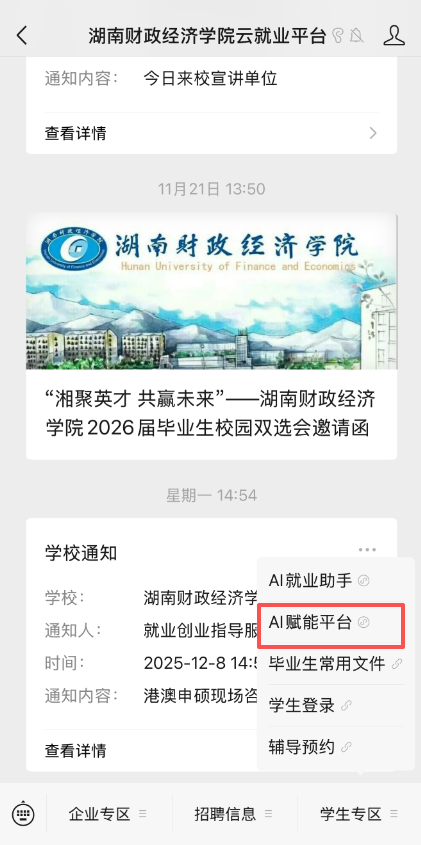 登录“WilliamHill官方网站云就业平台”公众号→“学生专区”→“AI赋能平台”→“我的”