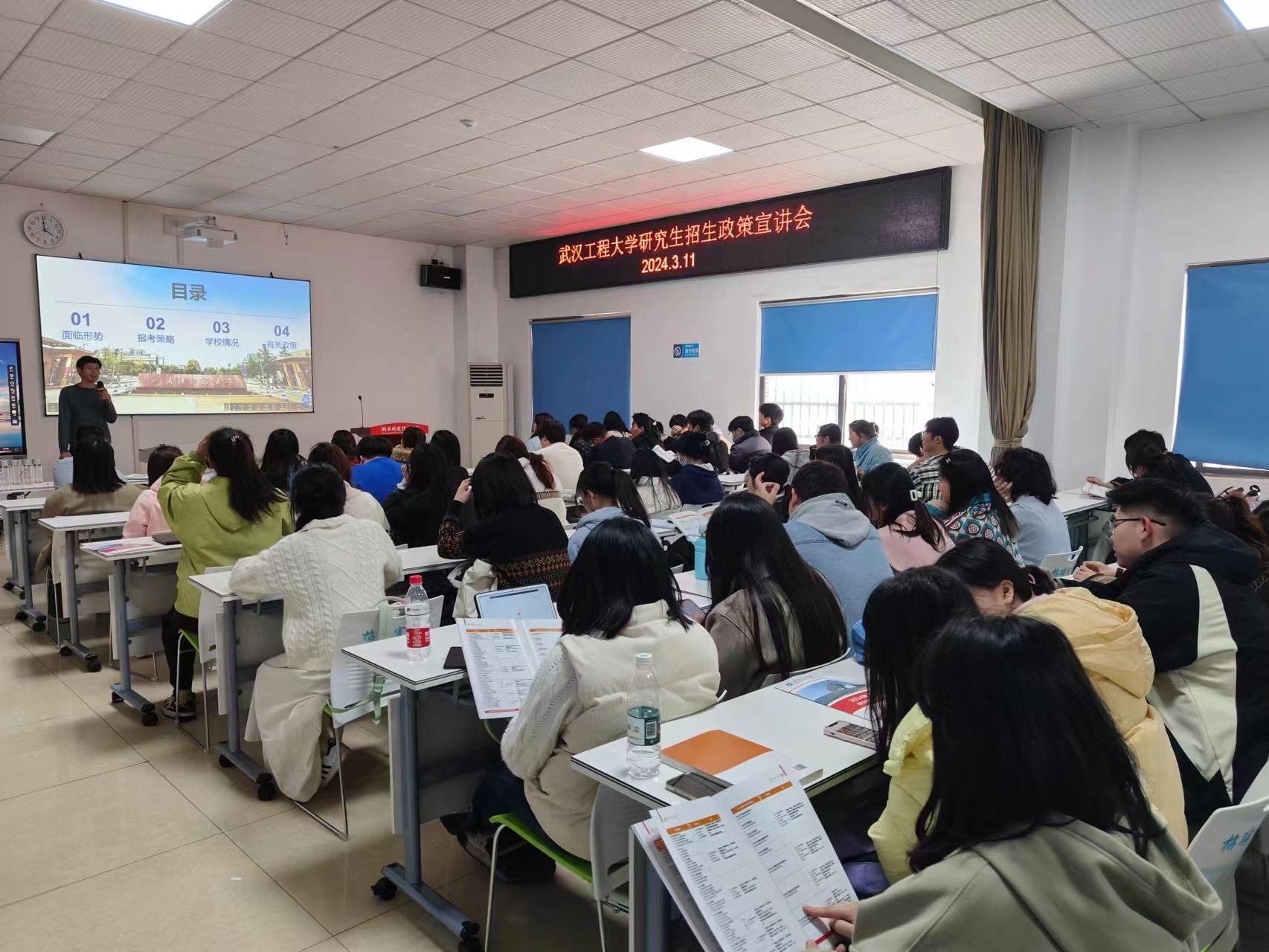 (本网讯)3月11日下午,武汉工程大学外语学院院长陈明芳、法商学院党委副书记孙勇、体育部副教授刘飞平一行来WilliamHill官网举行研究生招生宣讲会。宣讲会在体育馆一楼多媒体招聘室举行。WilliamHill官网相关二级学院的教师及2025届120余名有考研意愿的学生参加了宣讲会。