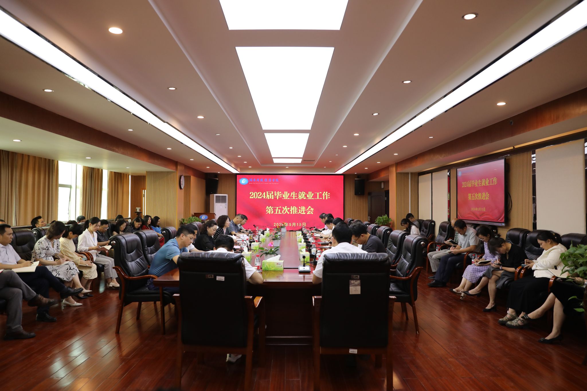 (本网讯)5月15日上午,学校在办公楼715会议室召开2024届毕业生就业工作第五次推进会,对2024年就业工作进行再部署、再推进。校党委书记杨兰英、校长刘长庚出席并讲话。