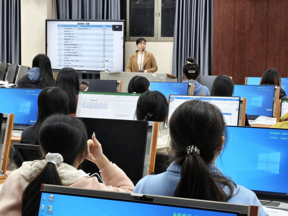 会计实验中心主任黄芳讲解手工帐务处理的要求以及具体细节,并强调各账目的类型以及填写标准,并说明手工账务提交的要求以及相关注意事项。副主任陈逵讲述比赛的信息化部分,使用用友软件需要注意的方面以及一些同学们可能会遇到的系统问题,并强调利用AI技术解答难题。