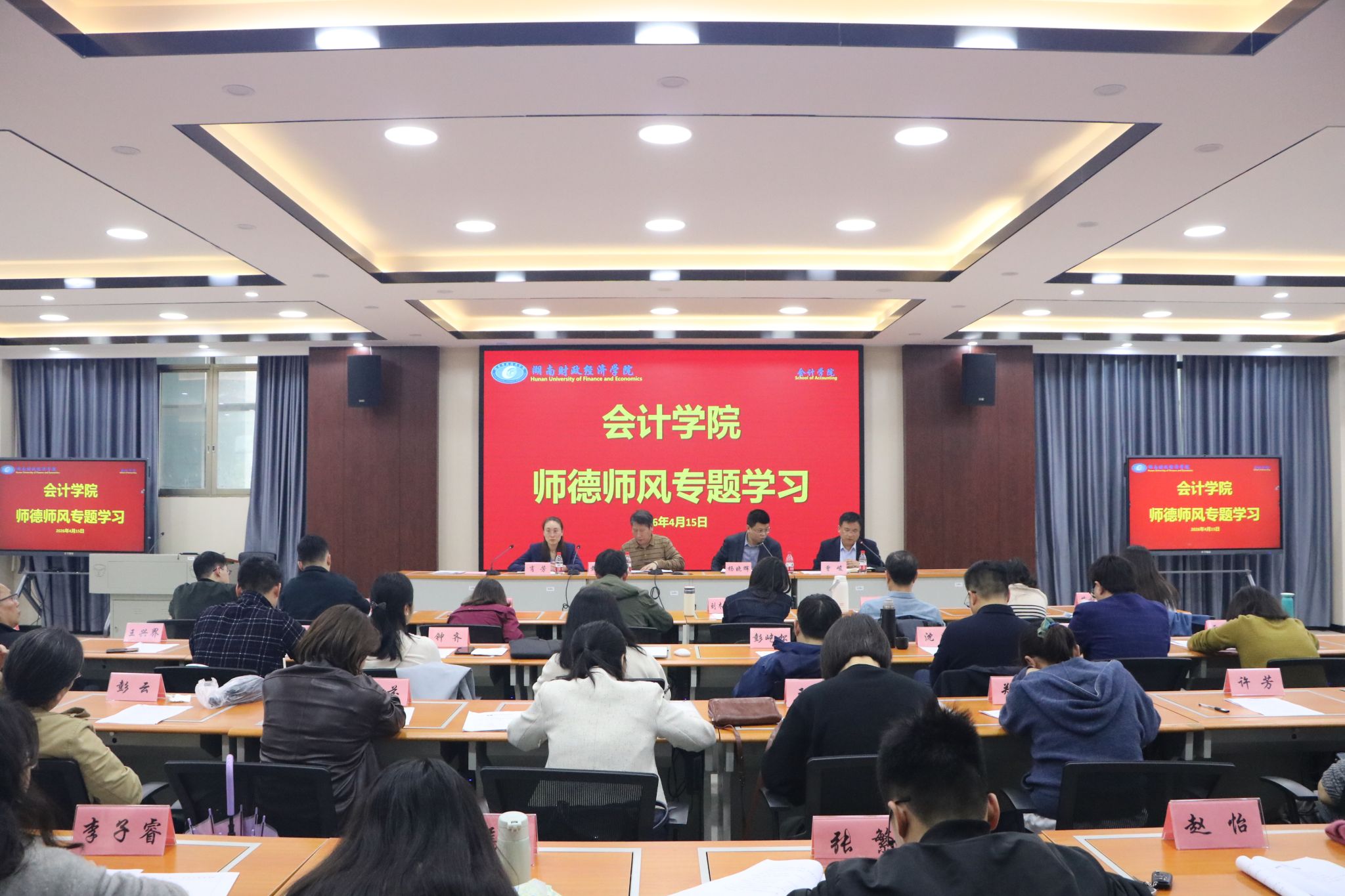 (本网讯)为加强师德师风教育,切实筑牢教师职业道德底线,4月15日下午,会计学院在实验楼1403会议室召开师德师风专题学习教育,学院全体教职工参会,院党委书记戴恩湘主持会议。