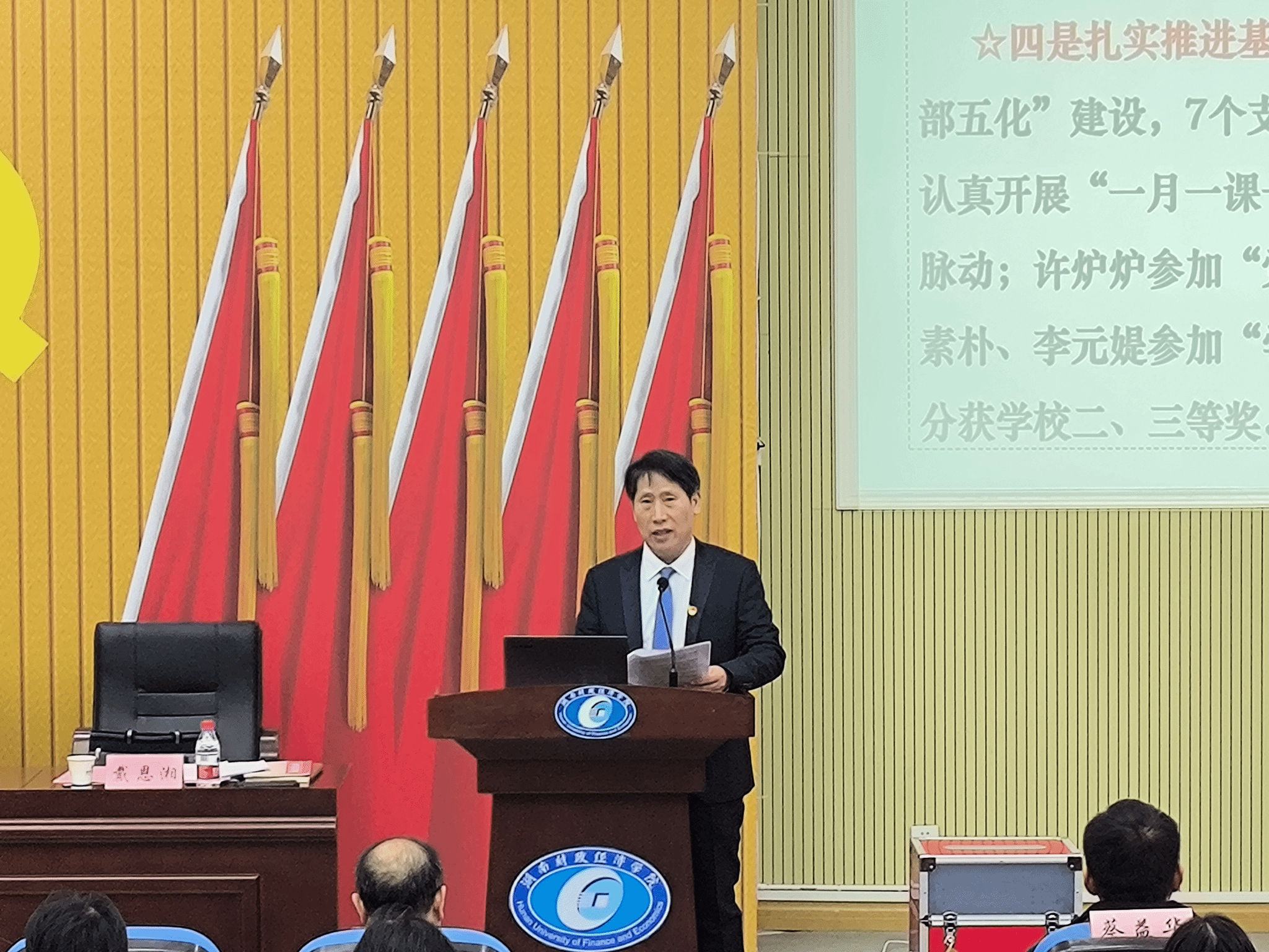 (本网讯)为进一步加强基层党组织建设,根据《中国共产党基层组织选举工作条例》(中发〔2020〕14 号)及《关于各二级党组织委员、书记、副书记候选人的批复》(湖财党发〔2023〕93 号)的文件精神,会计学院于2024年1月9日上午在2J02召开党员大会,选举新一届院党委委员。校党委副书记苏玲、学院领导班子及全体师生党员参加,会议分别由院党委组织委员蔡益华、院党委书记戴恩湘主持。
